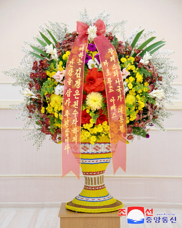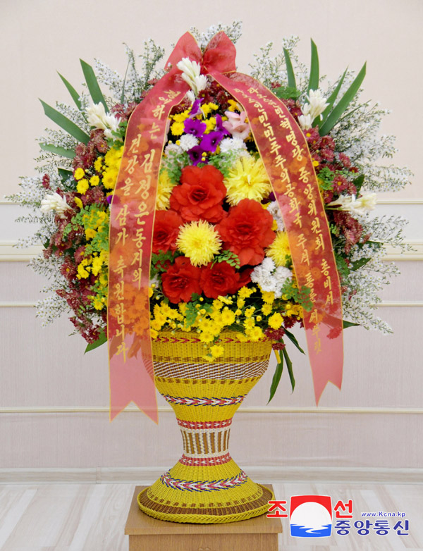 꽃바구니를 8일 해당 부문 일군에게 우리 나라 주재 라오스특명전권대사가 전달하였다.(끝)
