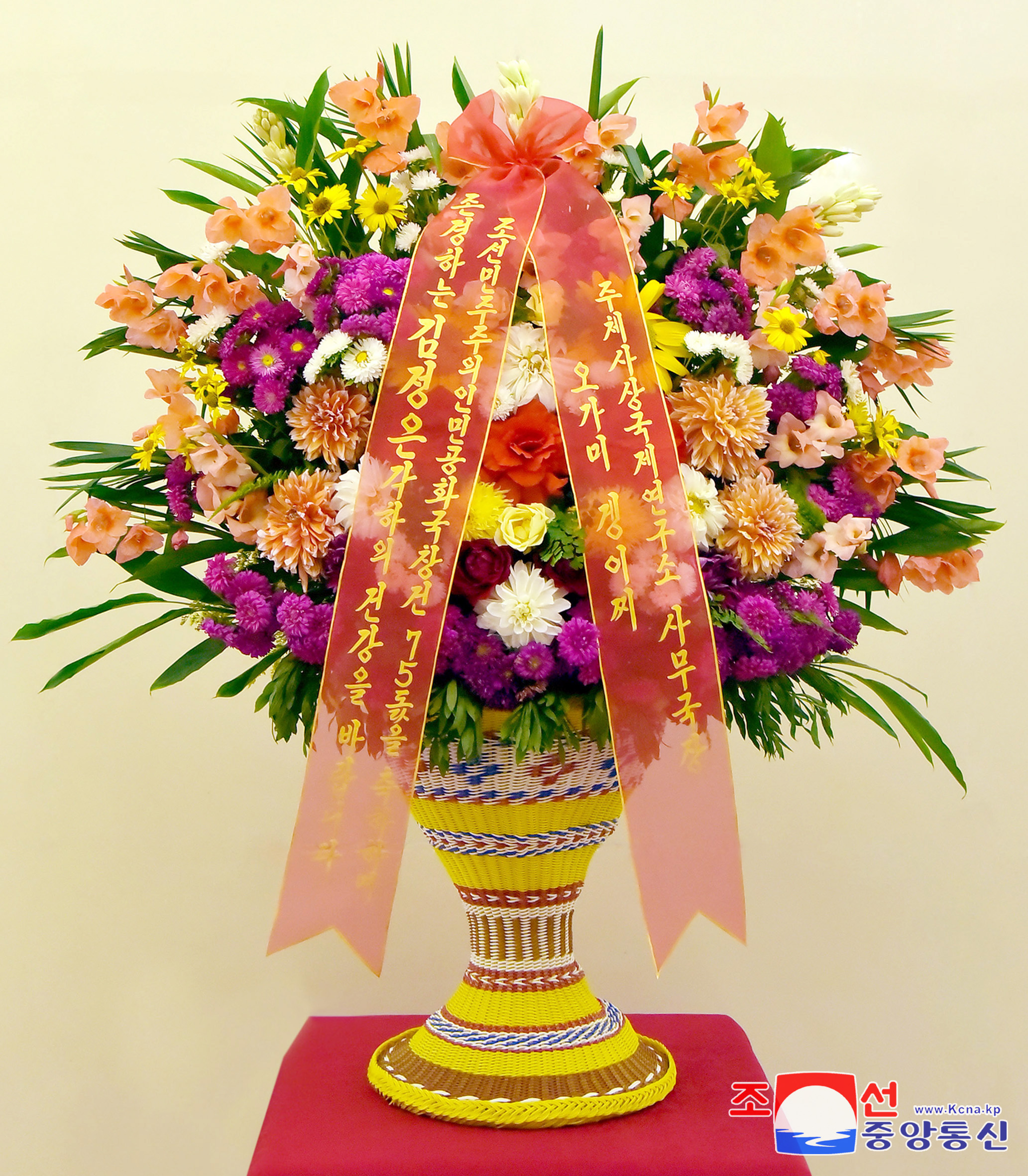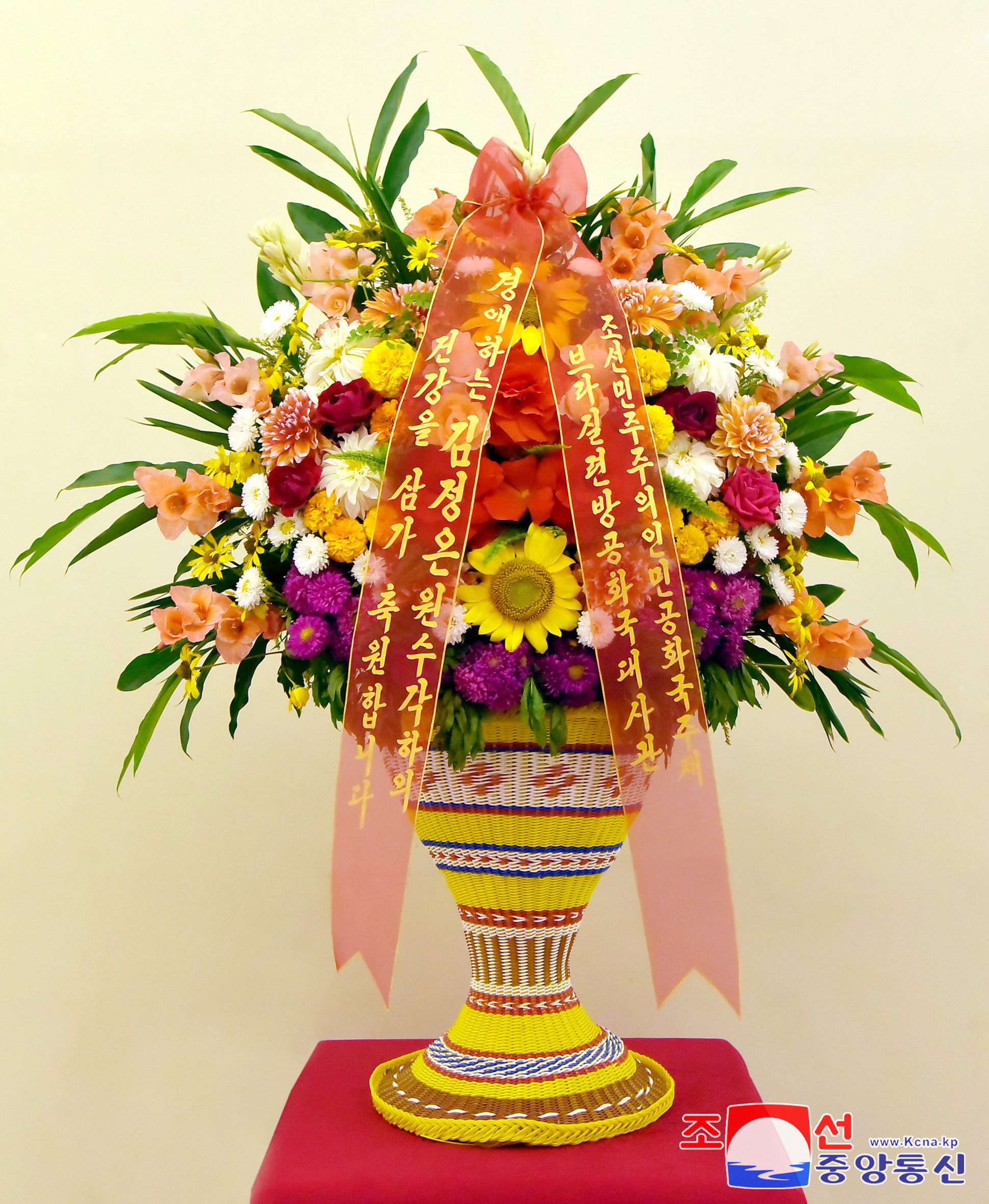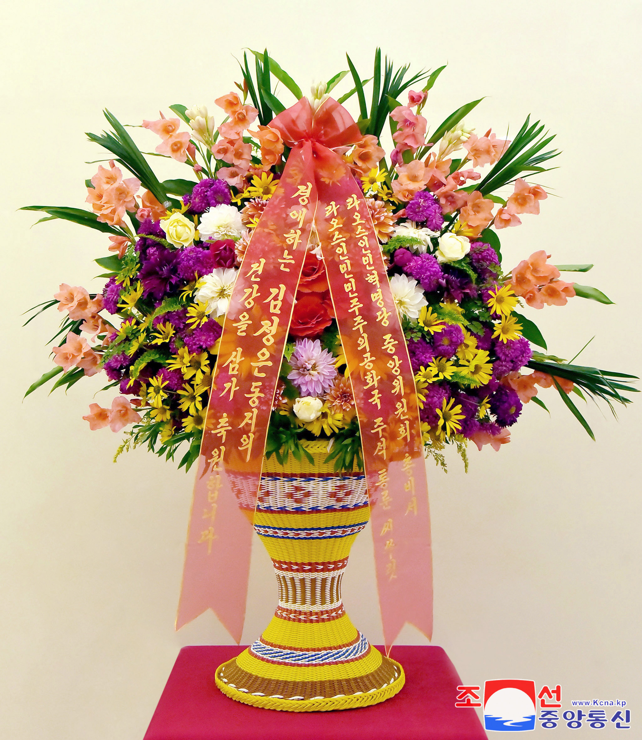 꽃바구니를 5일 해당 부문 일군에게 우리 나라 주재 라오스인민민주주의공화국 특명전권대사가 전달하였다.(끝)