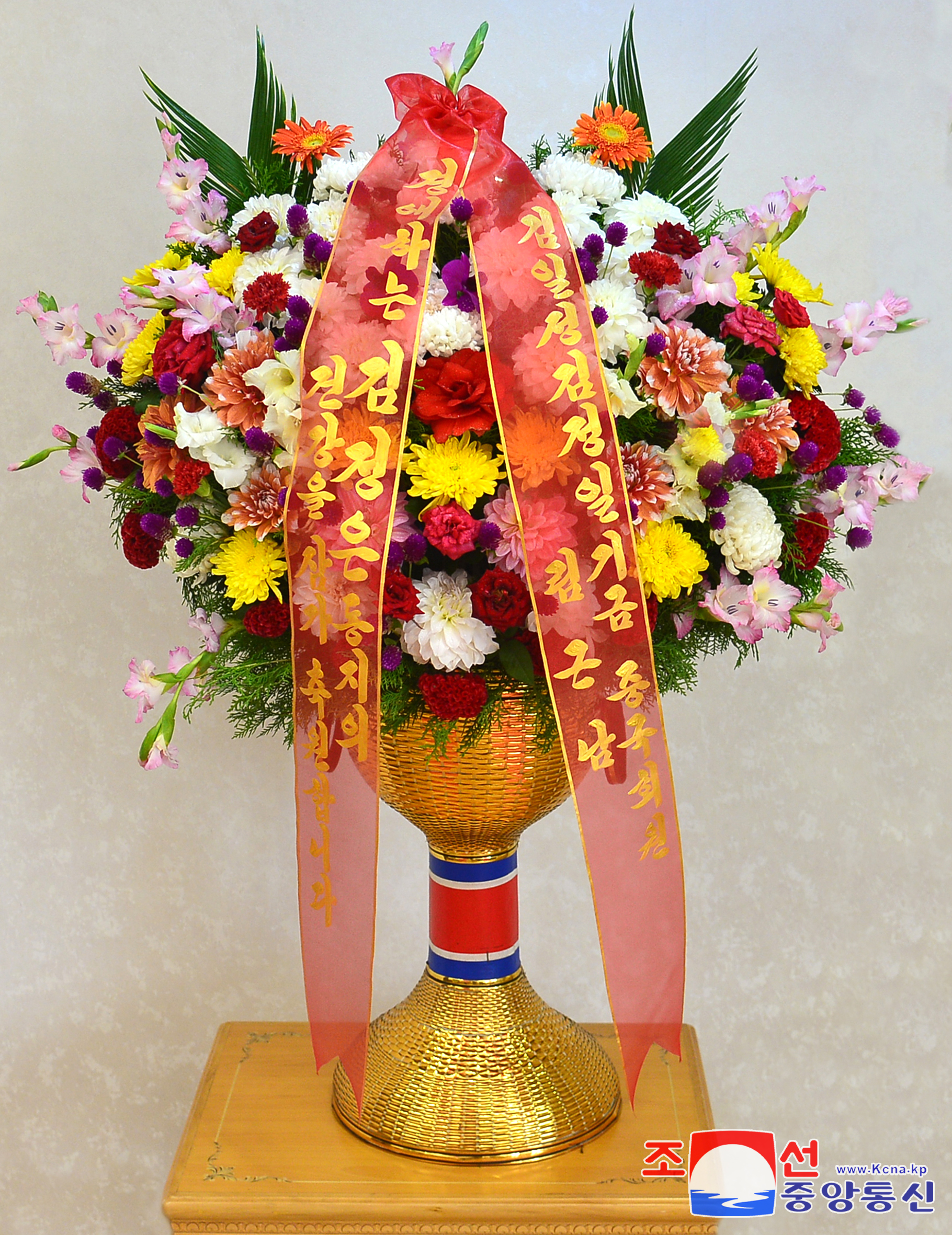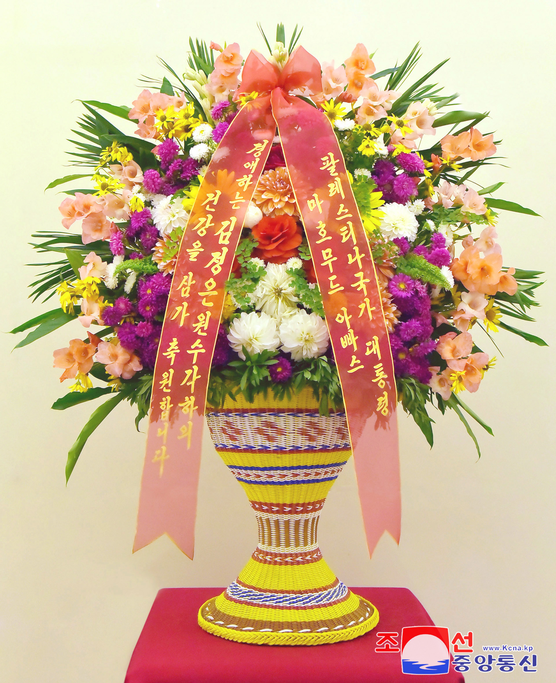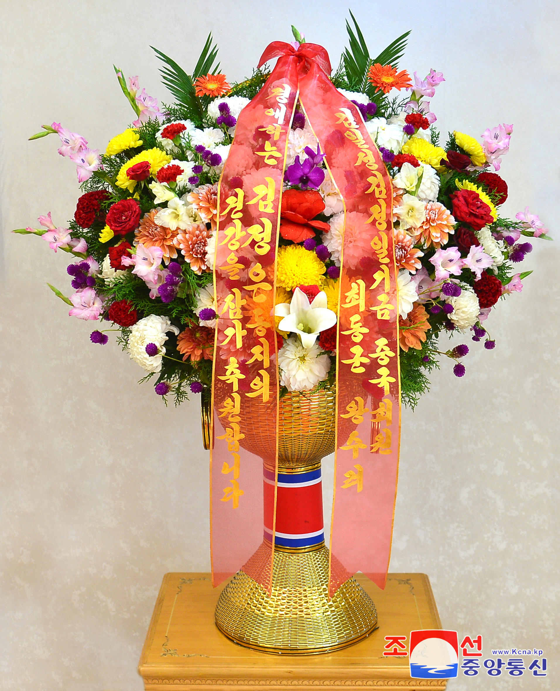 꽃바구니를 5일 해당 부문 일군에게 우리 나라 주재 라오스인민민주주의공화국 특명전권대사가 전달하였다.(끝)