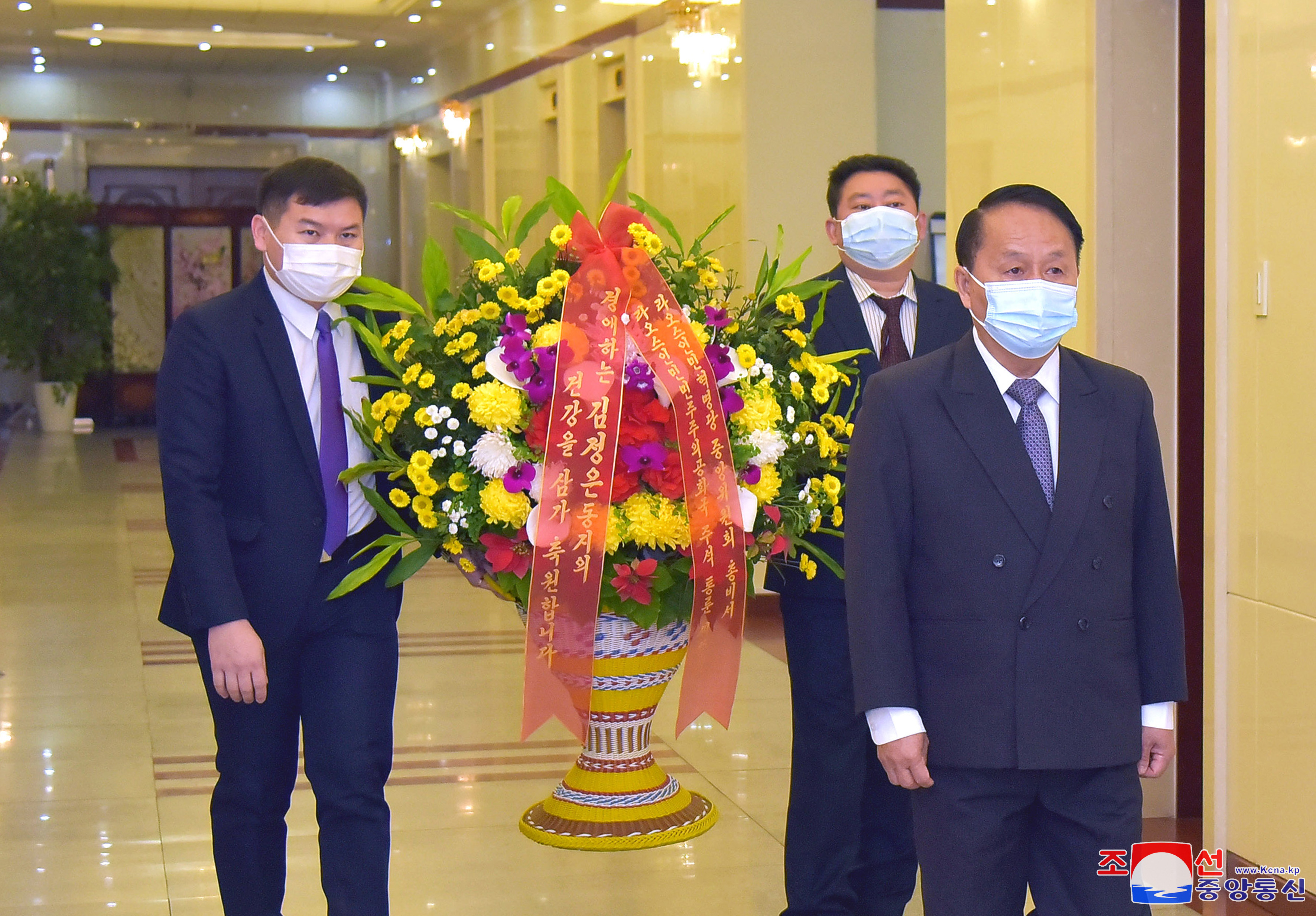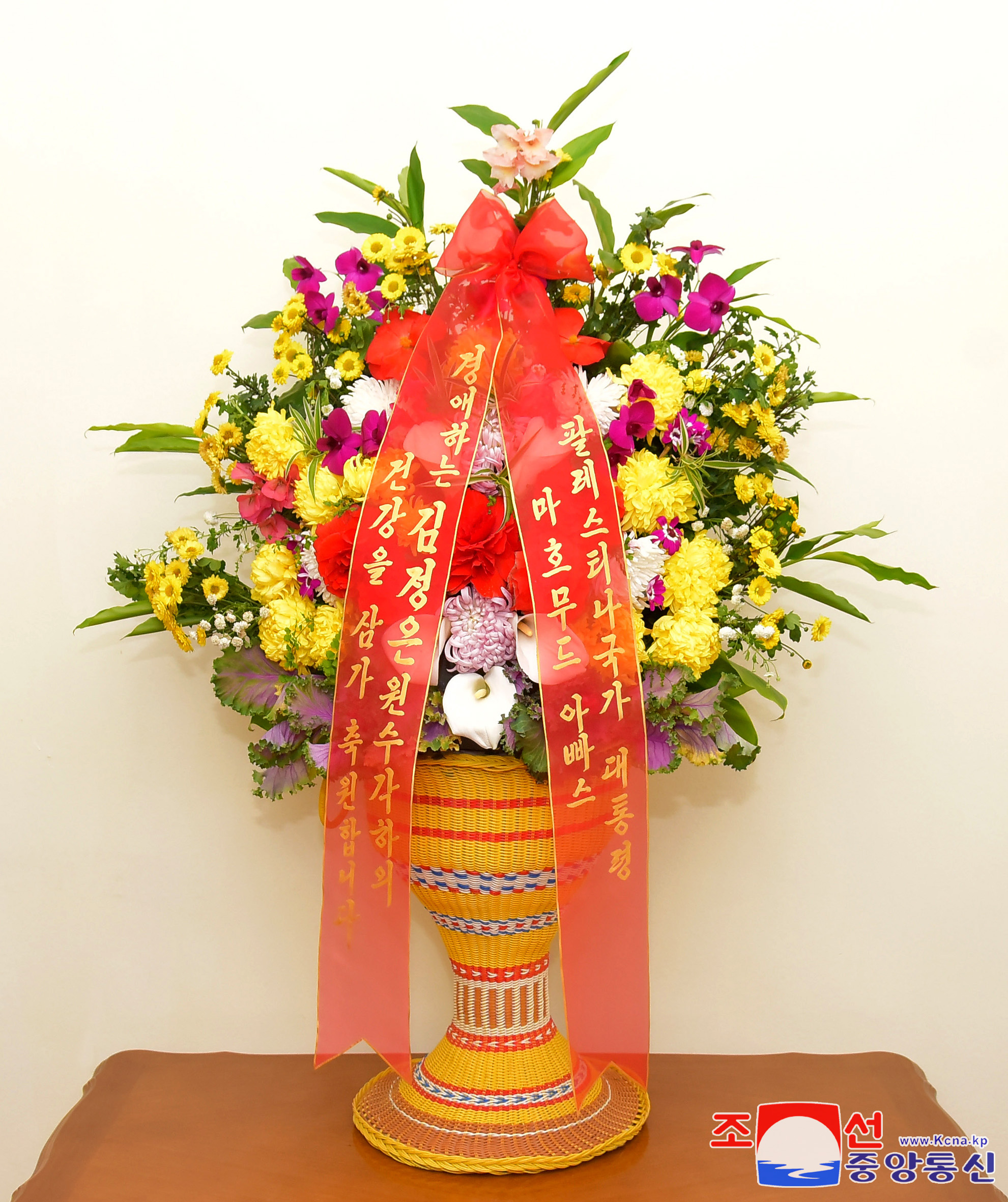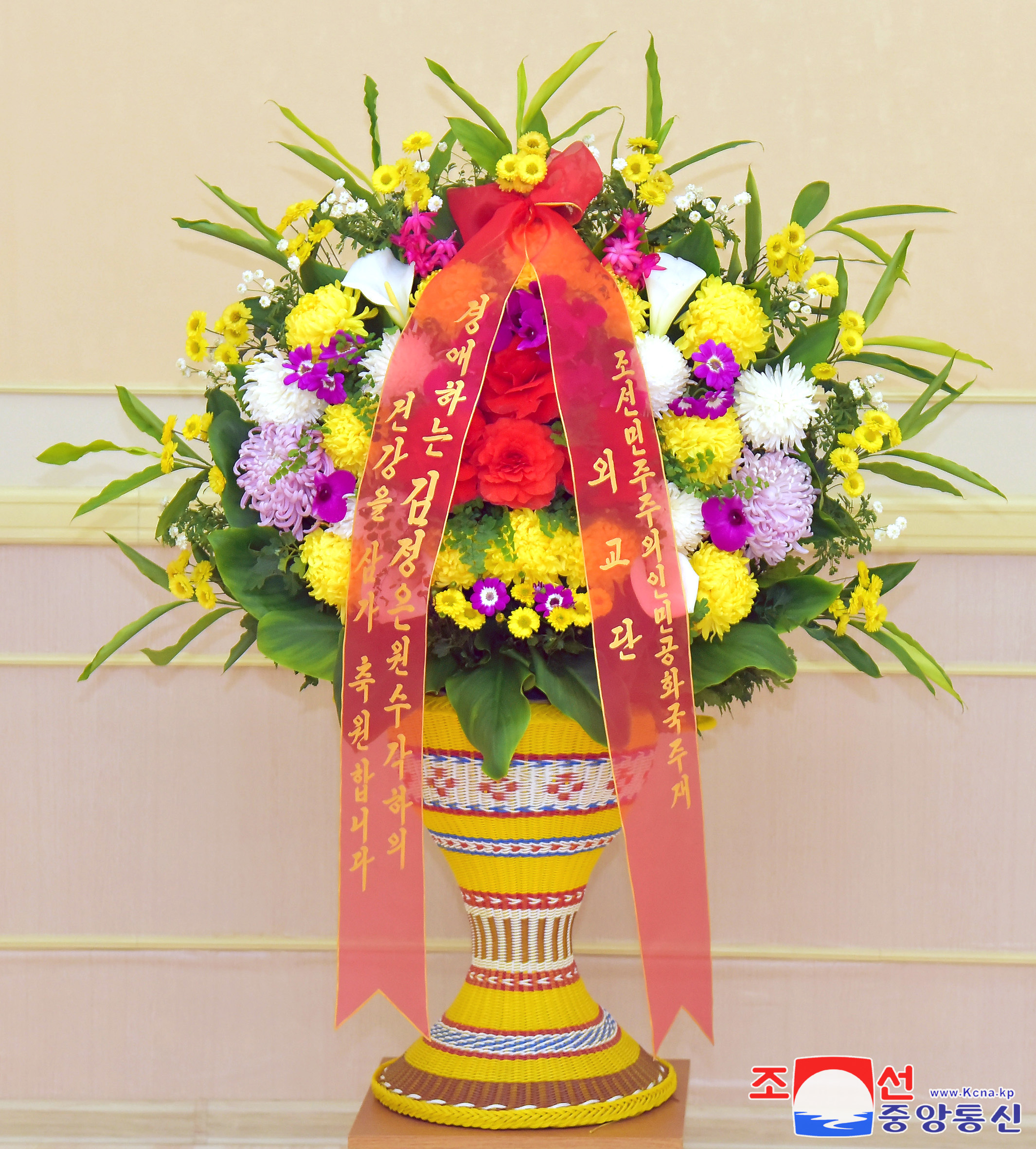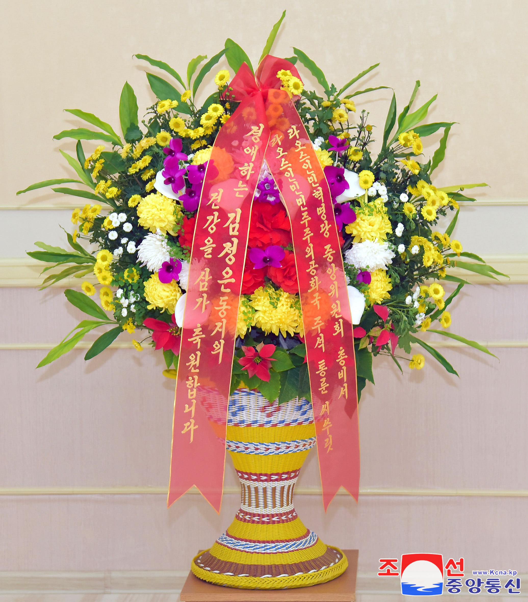 꽃바구니를 13일 해당 부문 일군에게 우리 나라 주재 라오스인민민주주의공화국 특명전권대사가 전달하였다.(끝)