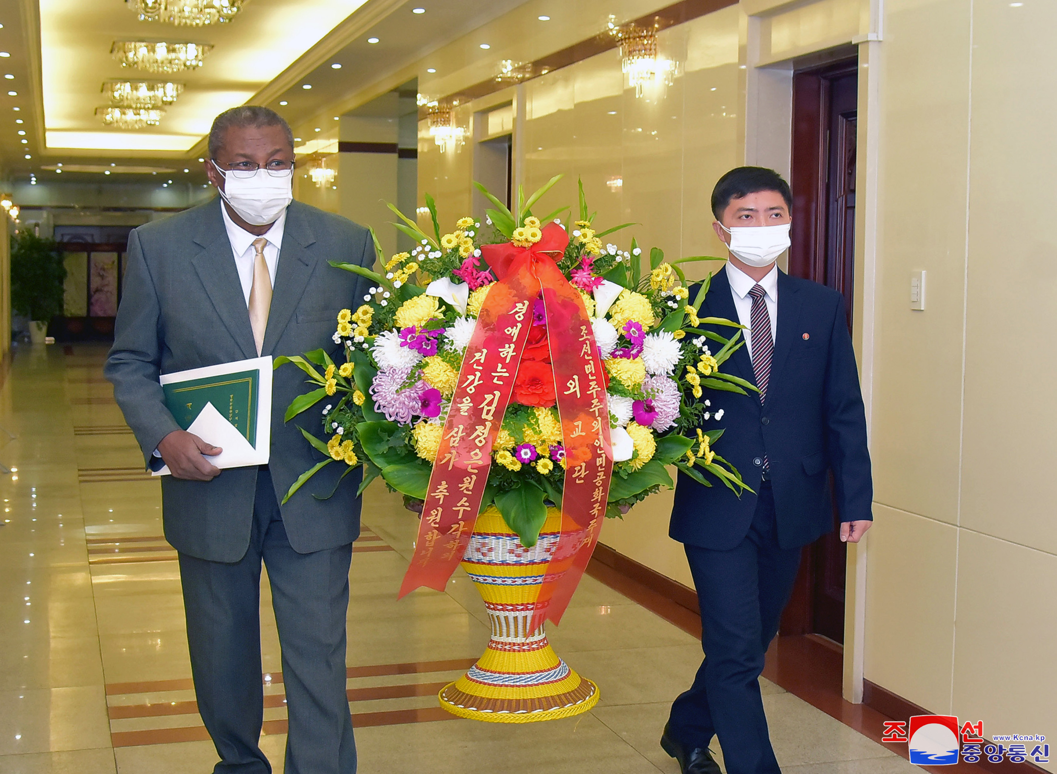 꽃바구니와 축하편지를 13일 해당 부문 일군에게 외교단을 대표하여 꾸바공화국 특명전권대사가 전달하였다.