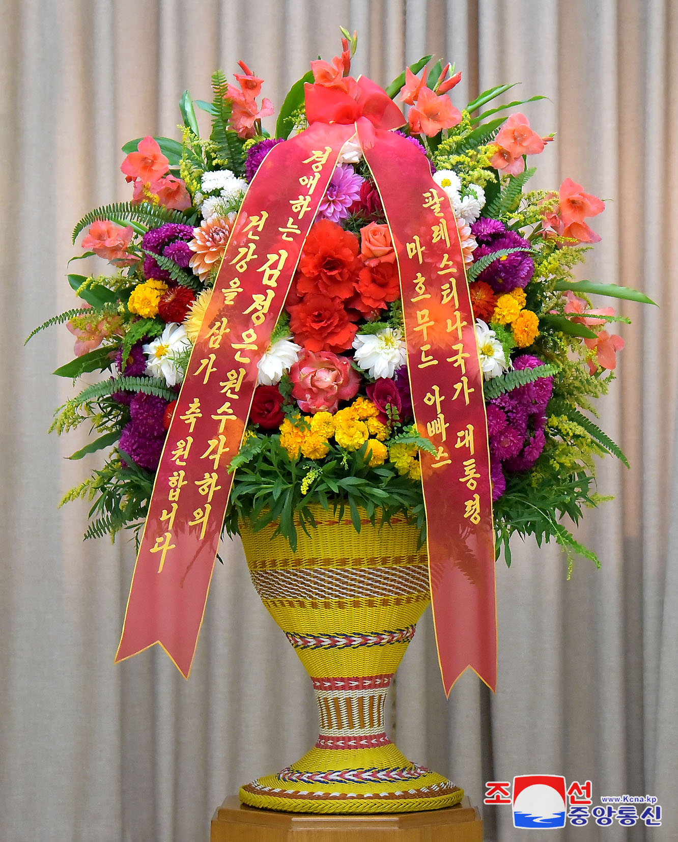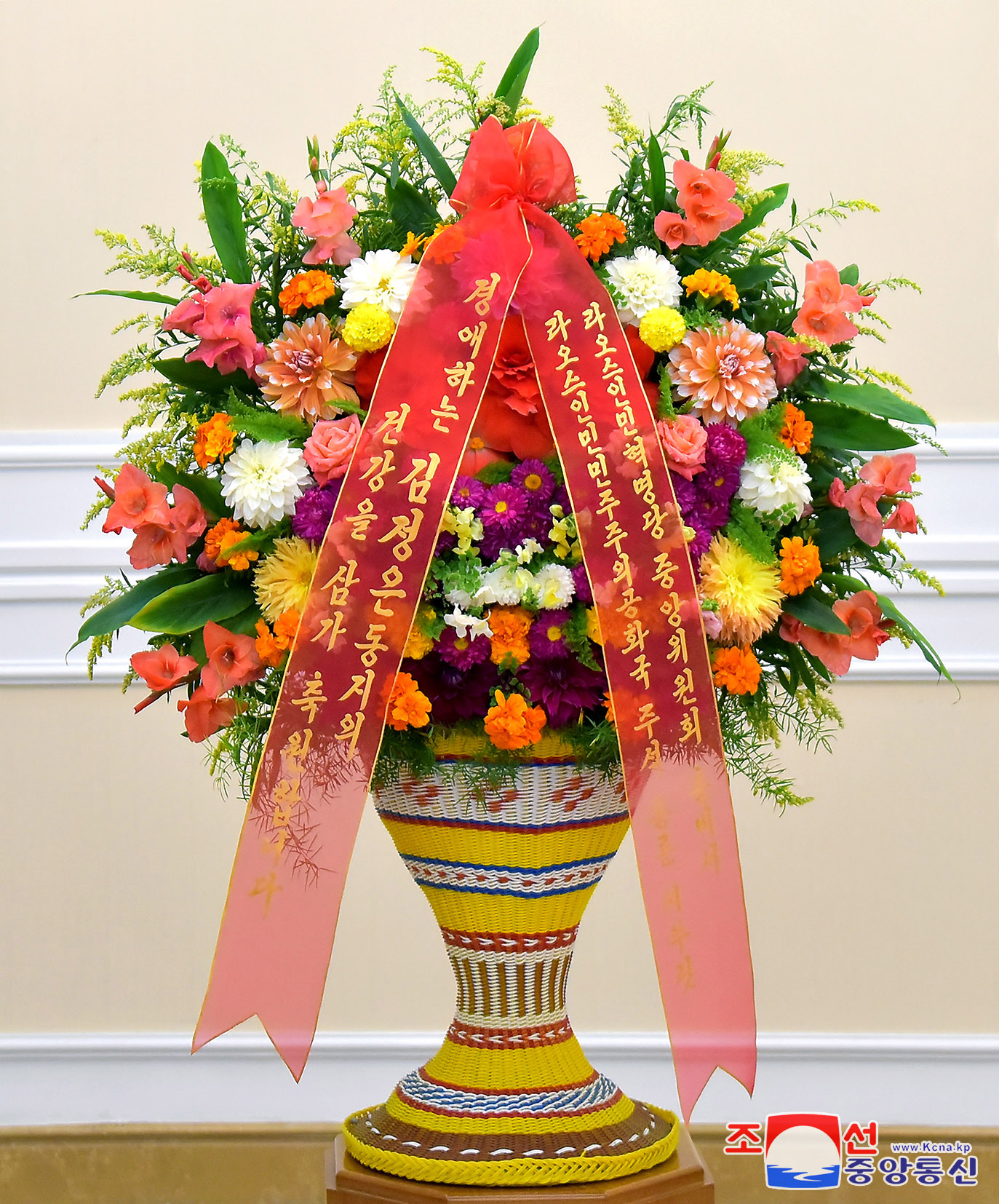 꽃바구니를 5일 해당 부문 일군에게 우리 나라 주재 라오스인민민주주의공화국 특명전권대사가 전달하였다.(끝)