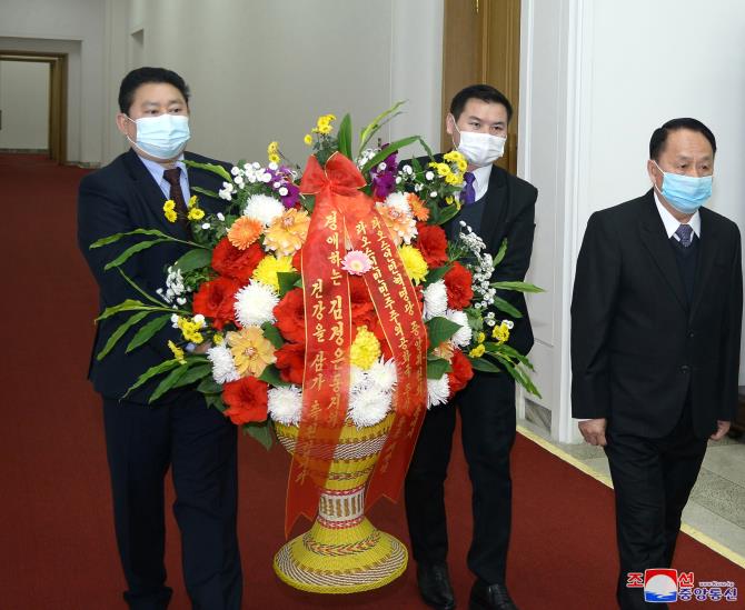 꽃바구니를 10일 만수대의사당에서 조선로동당 중앙위원회 국제부장 김성남동지에게 씨싸왓 캄싸리 우리 나라 주재 라오스인민민주주의공화국 특명전권대사가 전달하였다.(끝)