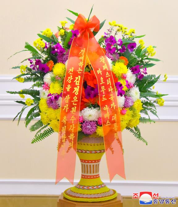 꽃바구니를 28일 해당 부문 일군에게 우리 나라 주재 라오스인민민주주의공화국 특명전권대사가 전달하였다.
