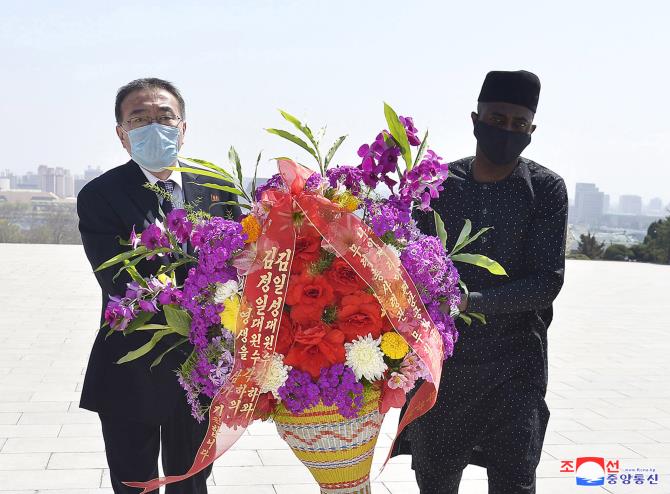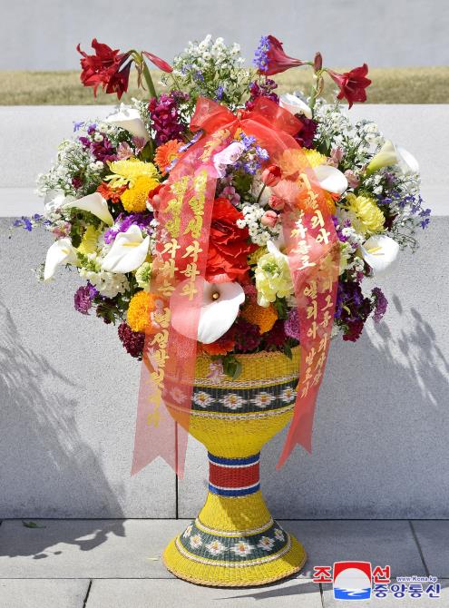 태양절에 즈음하여 만수대언덕에 높이 모신