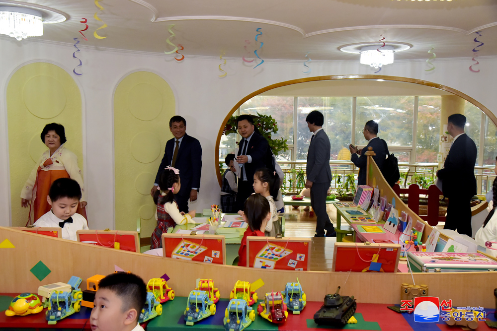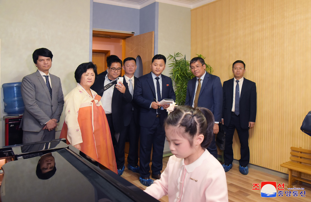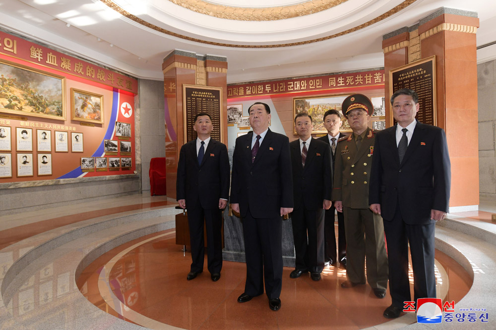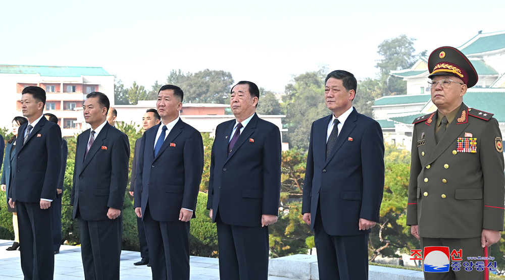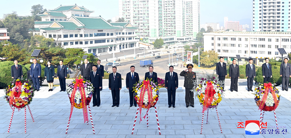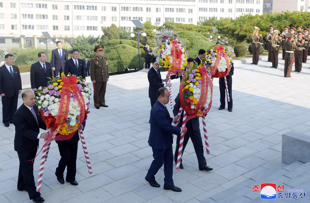 중국인민지원군 조선전선참전 74돐에 즈음하여 우리 나라 주재 중화인민공화국 특명전권대사와 대사관 성원들이 25일 우의탑에 화환을 진정하였다.