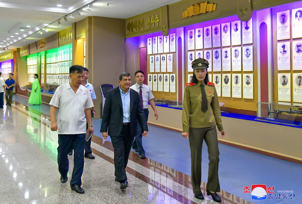 조선민주주의인민공화국과 니까라과공화국사이의 외교관계설정 45돐에 즈음하여 마누엘 모데스또 문기아 마르띠네스 우리 나라 주재 니까라과특명전권대사가 21일 조국해방전쟁승리기념관을 참관하였다.