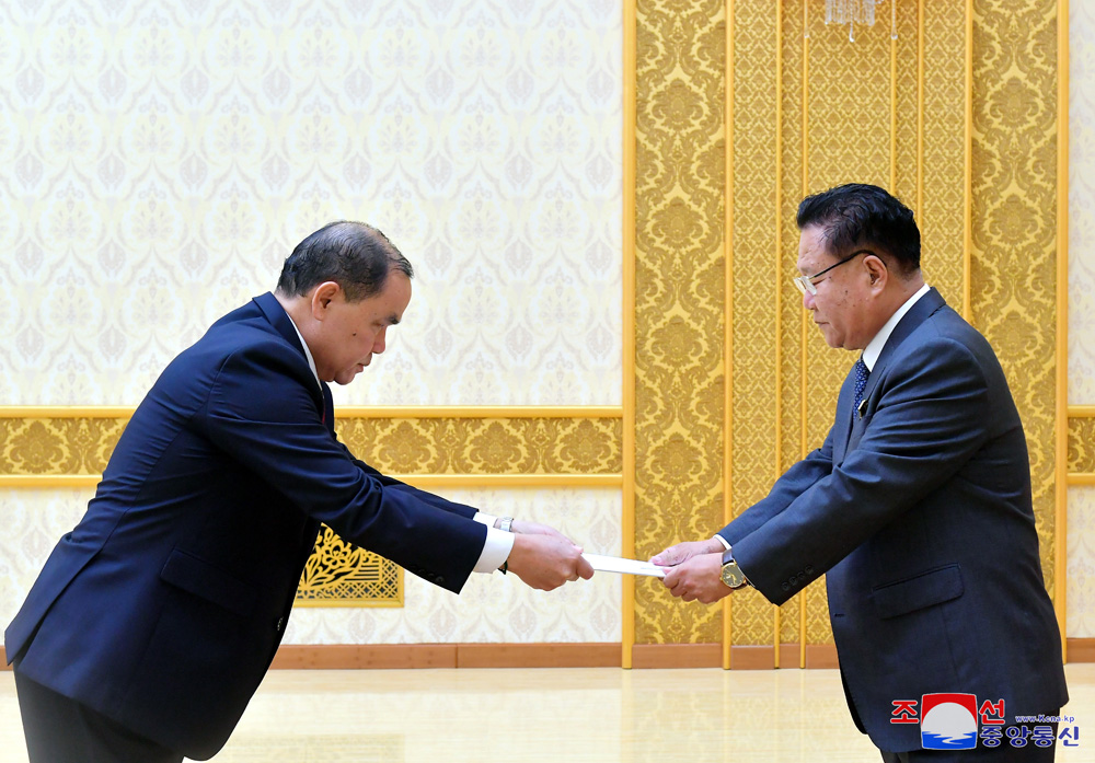 조선민주주의인민공화국 국무위원장동지의 위임에 따라 국무위원회 제1부위원장이며 최고인민회의 상임위원회 위원장인 최룡해동지가 22일 만수대의사당에서 깨우 막카펀 라오스인민민주주의공화국 특명전권대사로부터 신임장을 받았다.