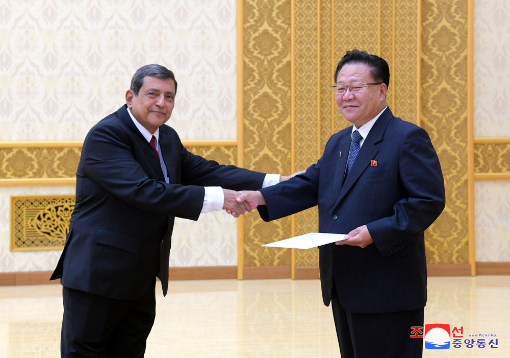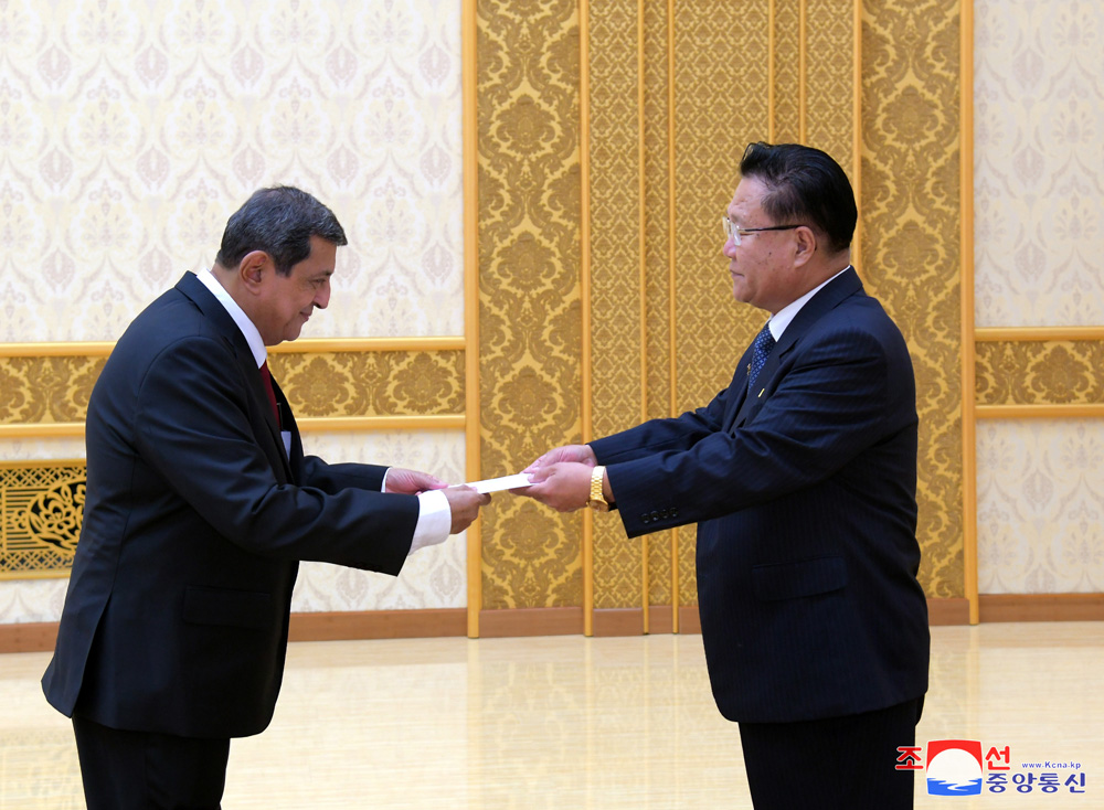 조선민주주의인민공화국 국무위원장동지의 위임에 따라 국무위원회 제1부위원장이며 최고인민회의 상임위원회 위원장인 최룡해동지가 11일 만수대의사당에서 마누엘 모데스또 문기아 마르띠네스 니까라과공화국 특명전권대사로부터 신임장을 받았다.