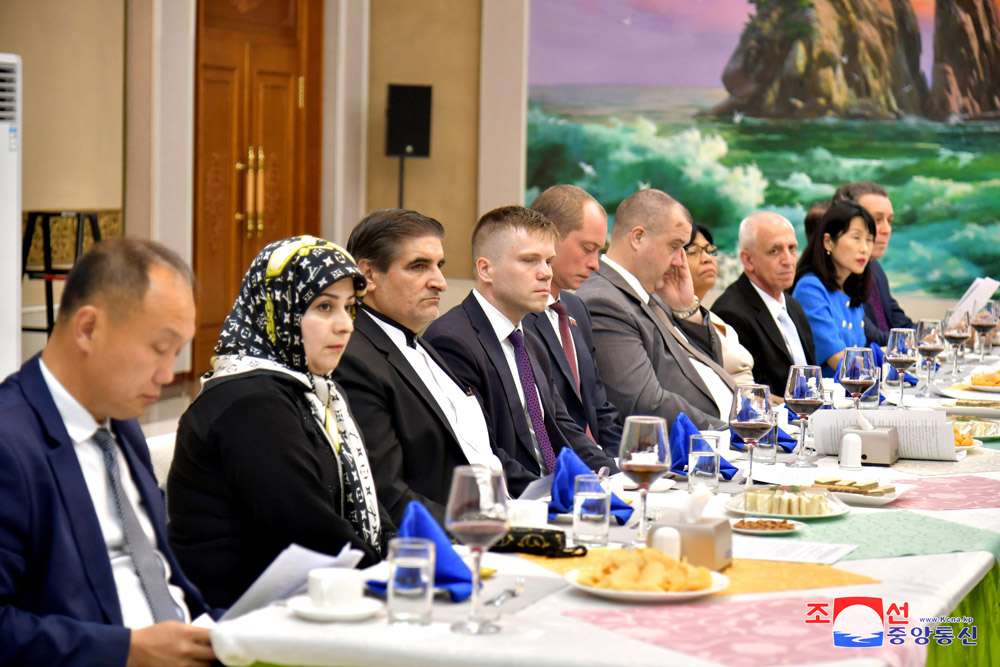 외무성 부상 라윤박동지, 관계부문 일군들과 우리 나라 주재 여러 나라 외교대표들, 대사관 성원들이 행사에 초대되였다.