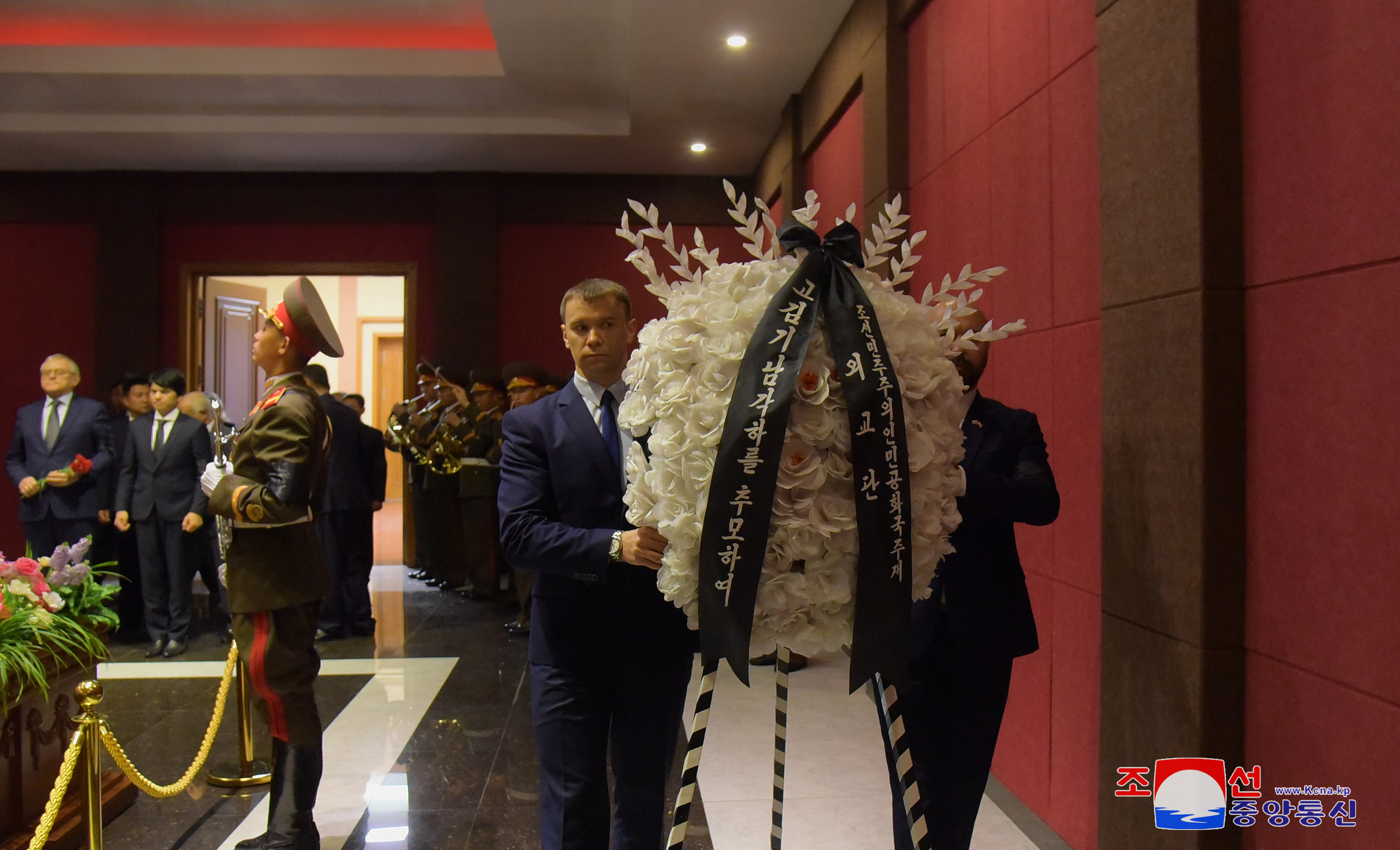 로씨야에서의 위대한 조국전쟁승리 79돐에 즈음하여 우리 나라 주재 로씨야련방대사관 성원들이 9일 해방탑에 화환을 진정하였다.
