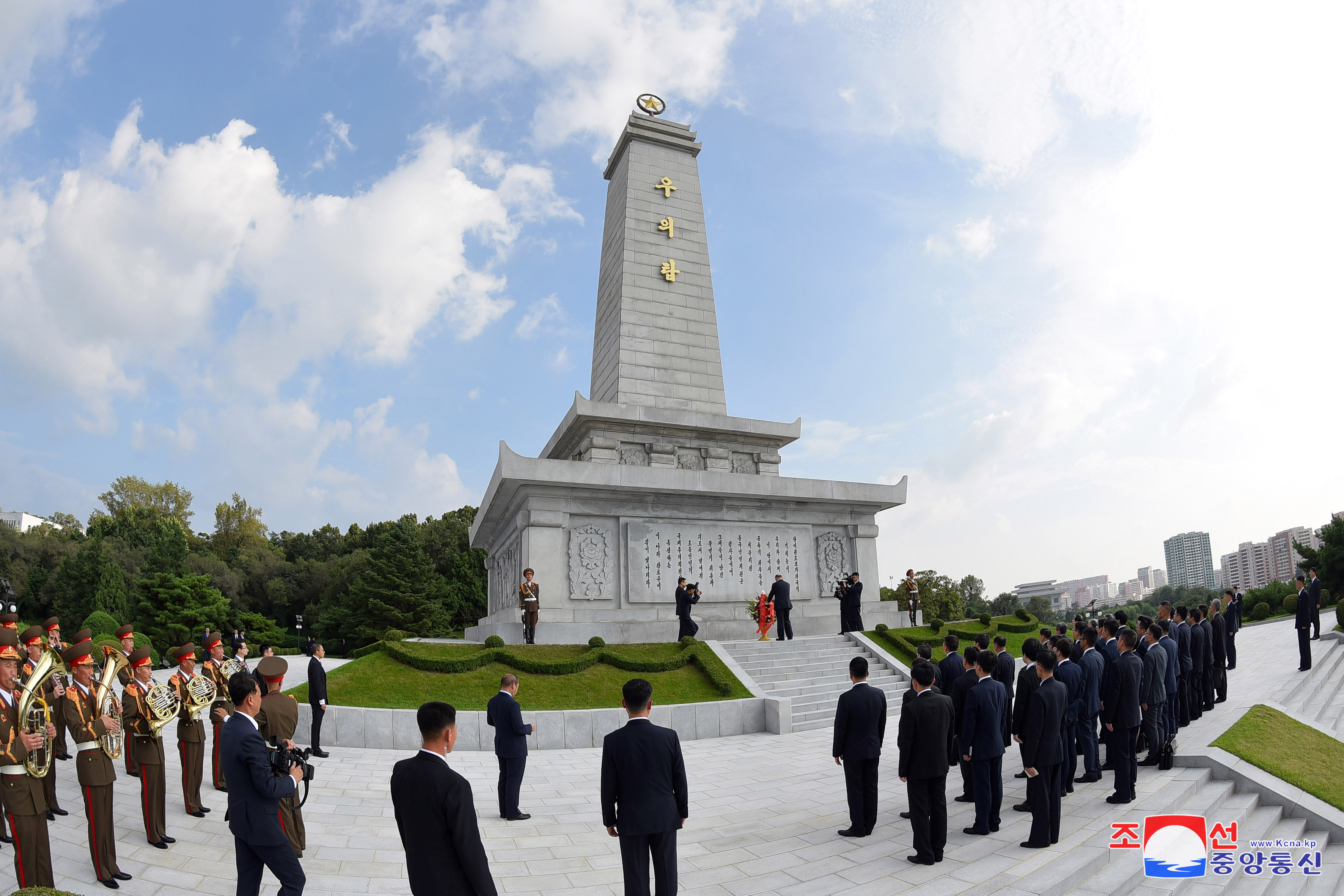 조선로동당 중앙위원회 부부장 문성혁동지, 조중친선협회 위원장인 대외문화련락위원회 부위원장 박경일동지와 왕아군 우리 나라 주재 중화인민공화국 특명전권대사, 대사관 성원들이 동행하였다.