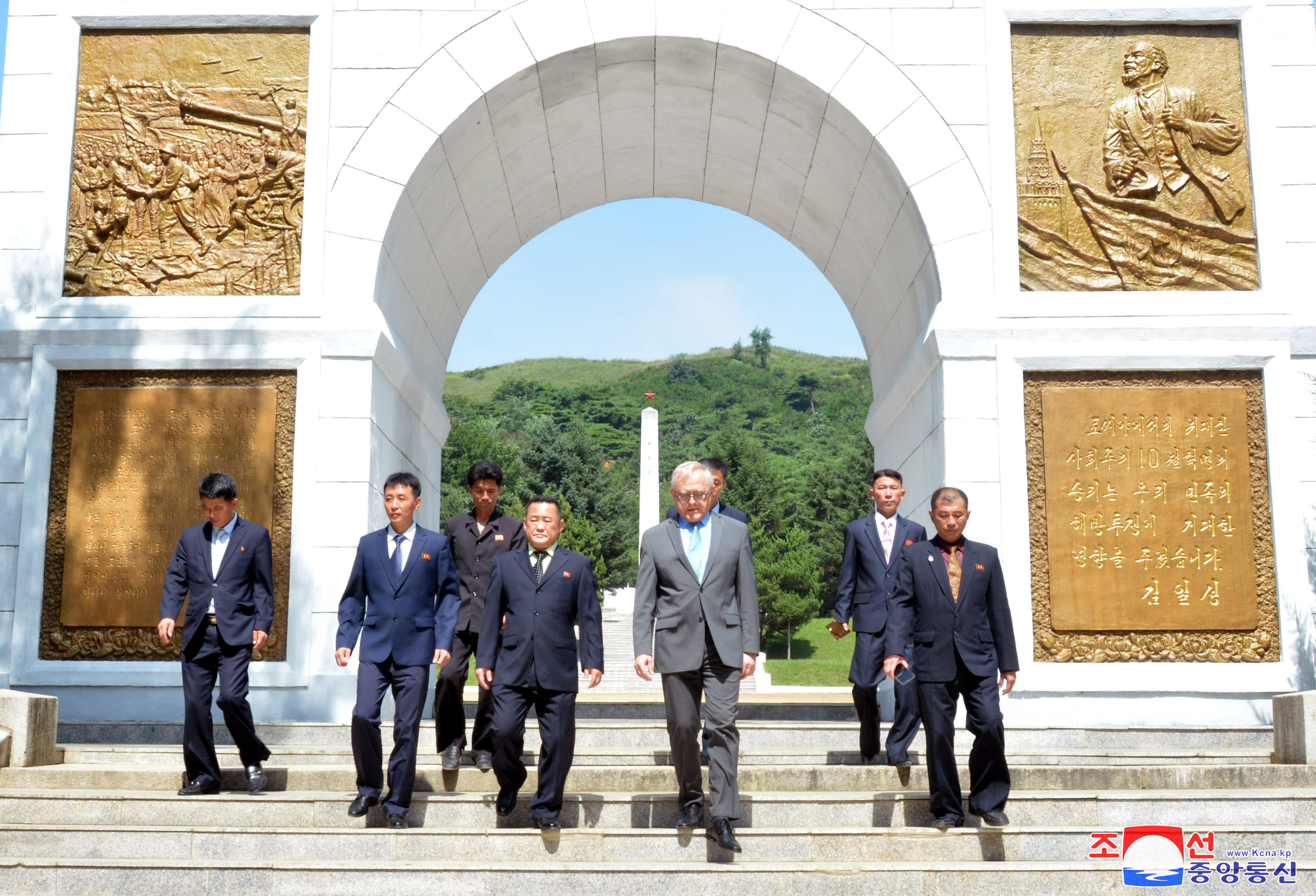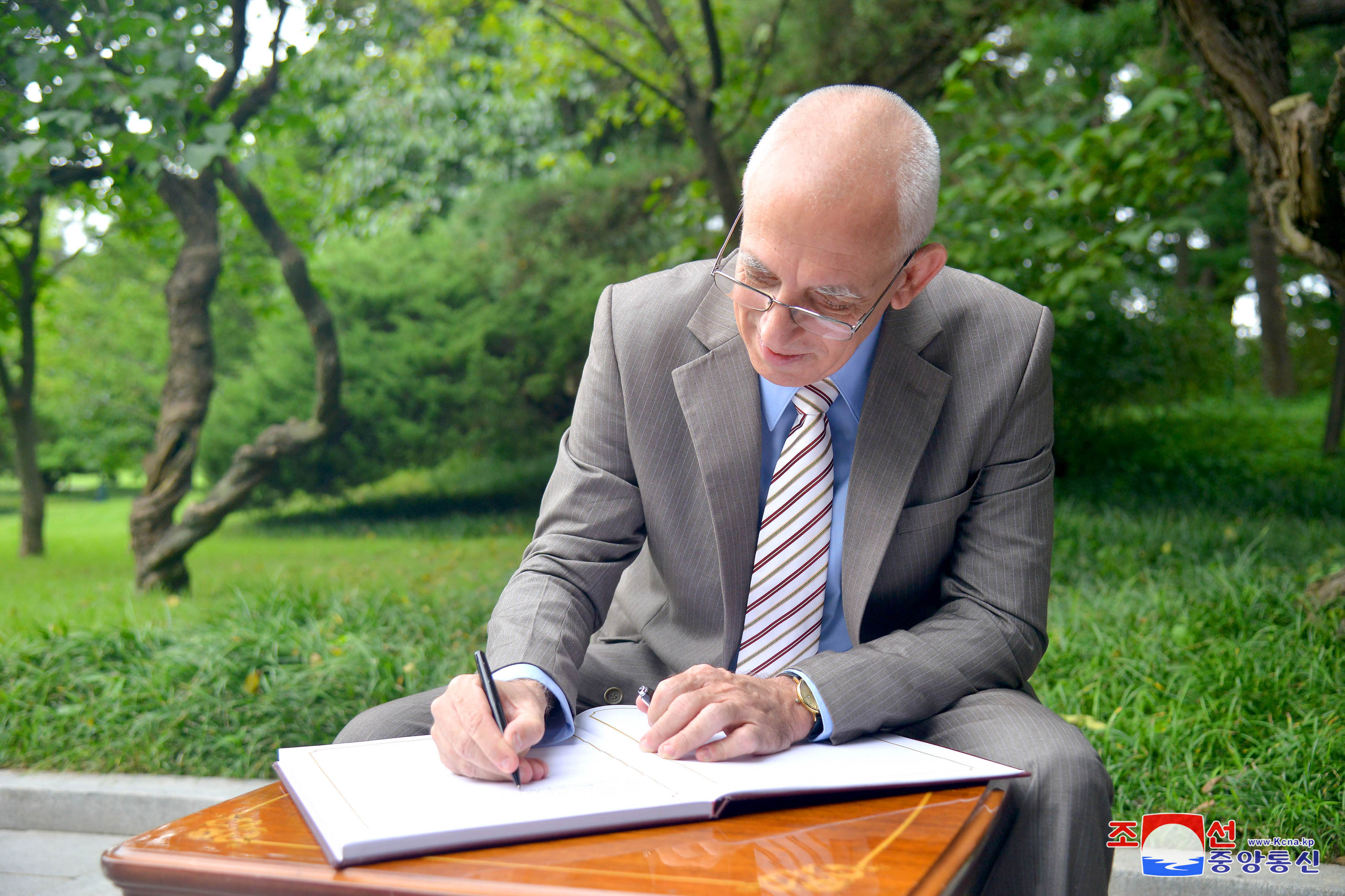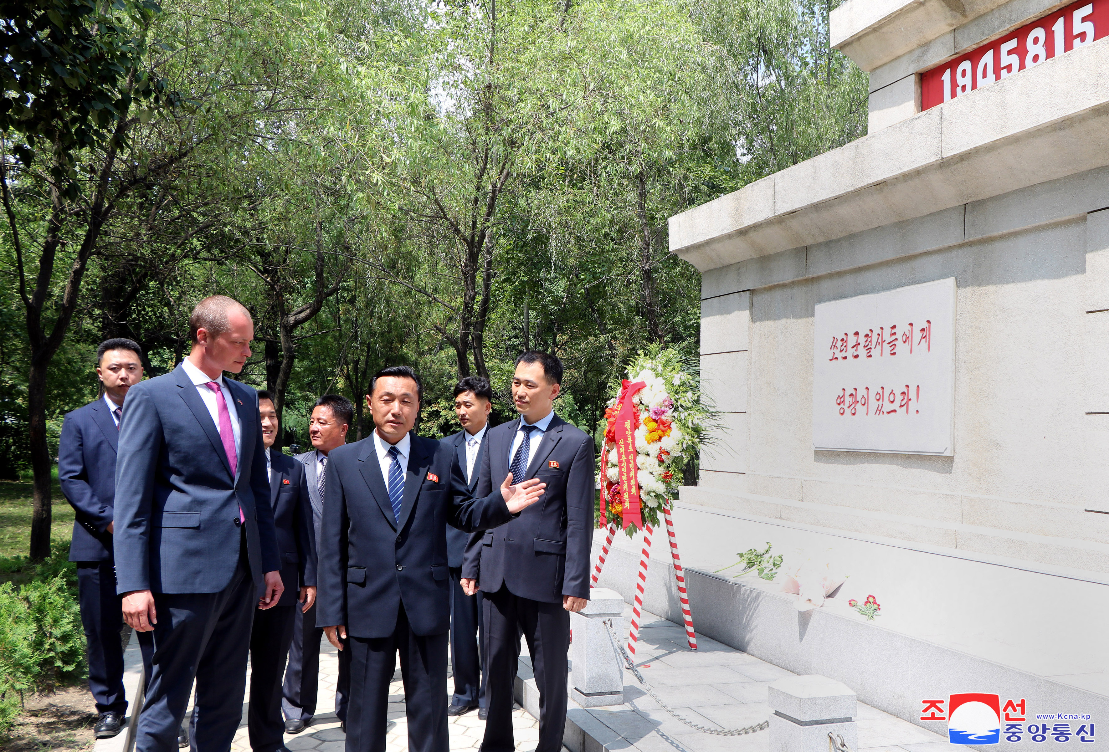 외무성, 지방정권기관 일군들과 우리 나라 주재 로씨야련방 특명전권대사를 비롯한 대사관 성원들, 체류중 로씨야손님들이 화환진정에 참가하였다.