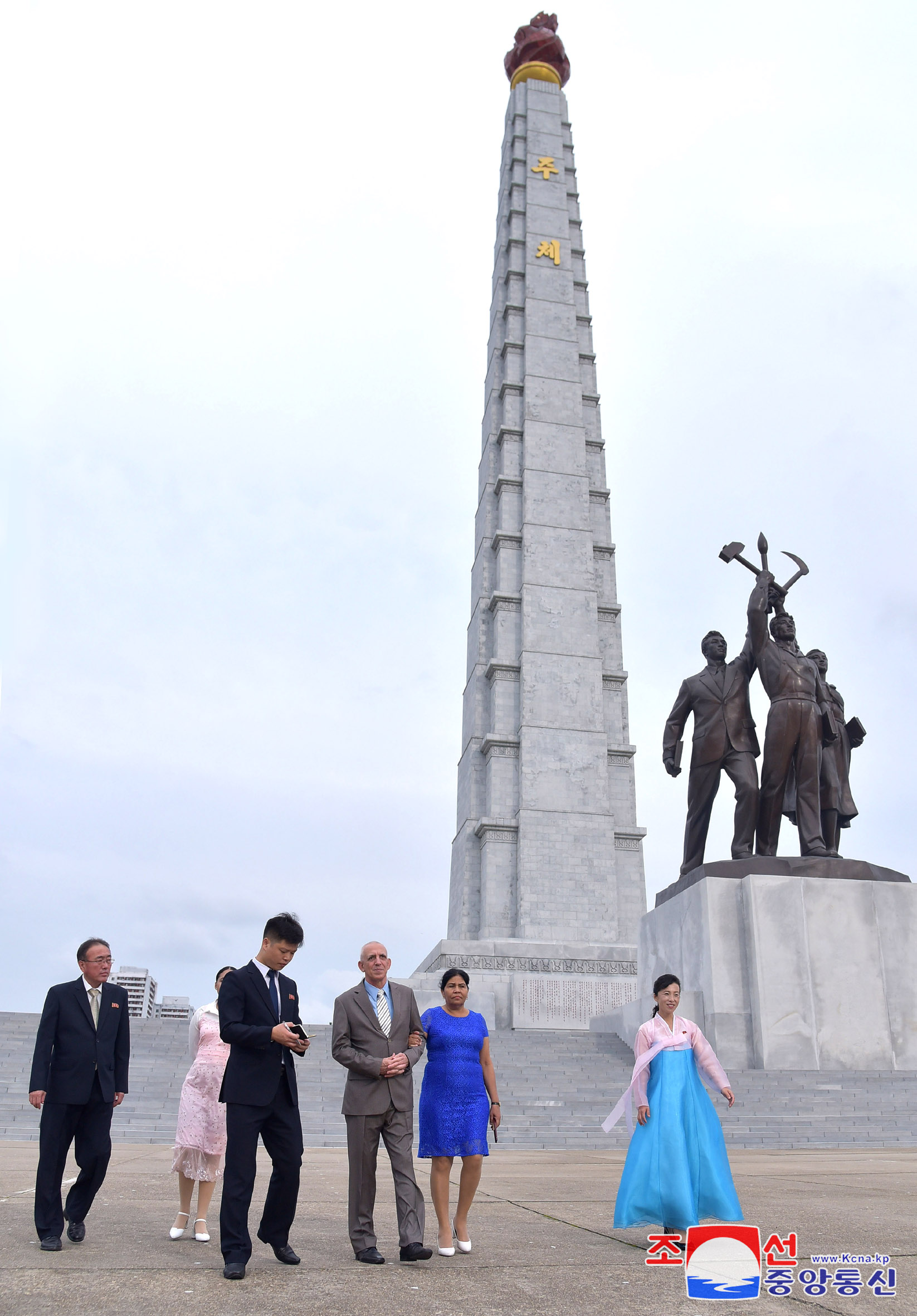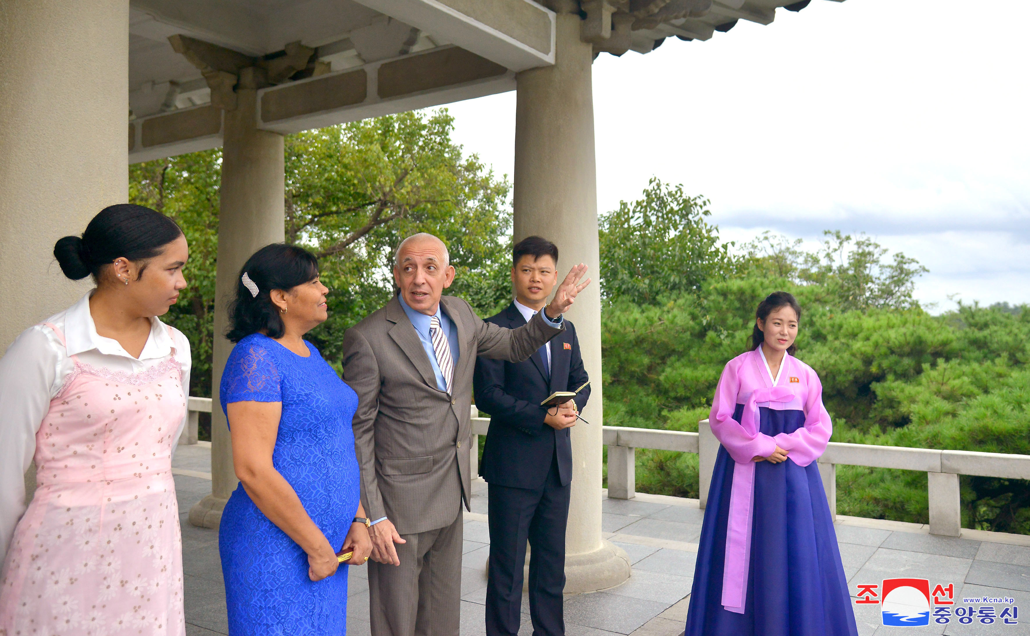 조선민주주의인민공화국과 꾸바공화국사이의 외교관계설정 63돐에 즈음하여 우리 나라 주재 꾸바공화국대사관 성원들이 30일 만경대를 방문하였다.