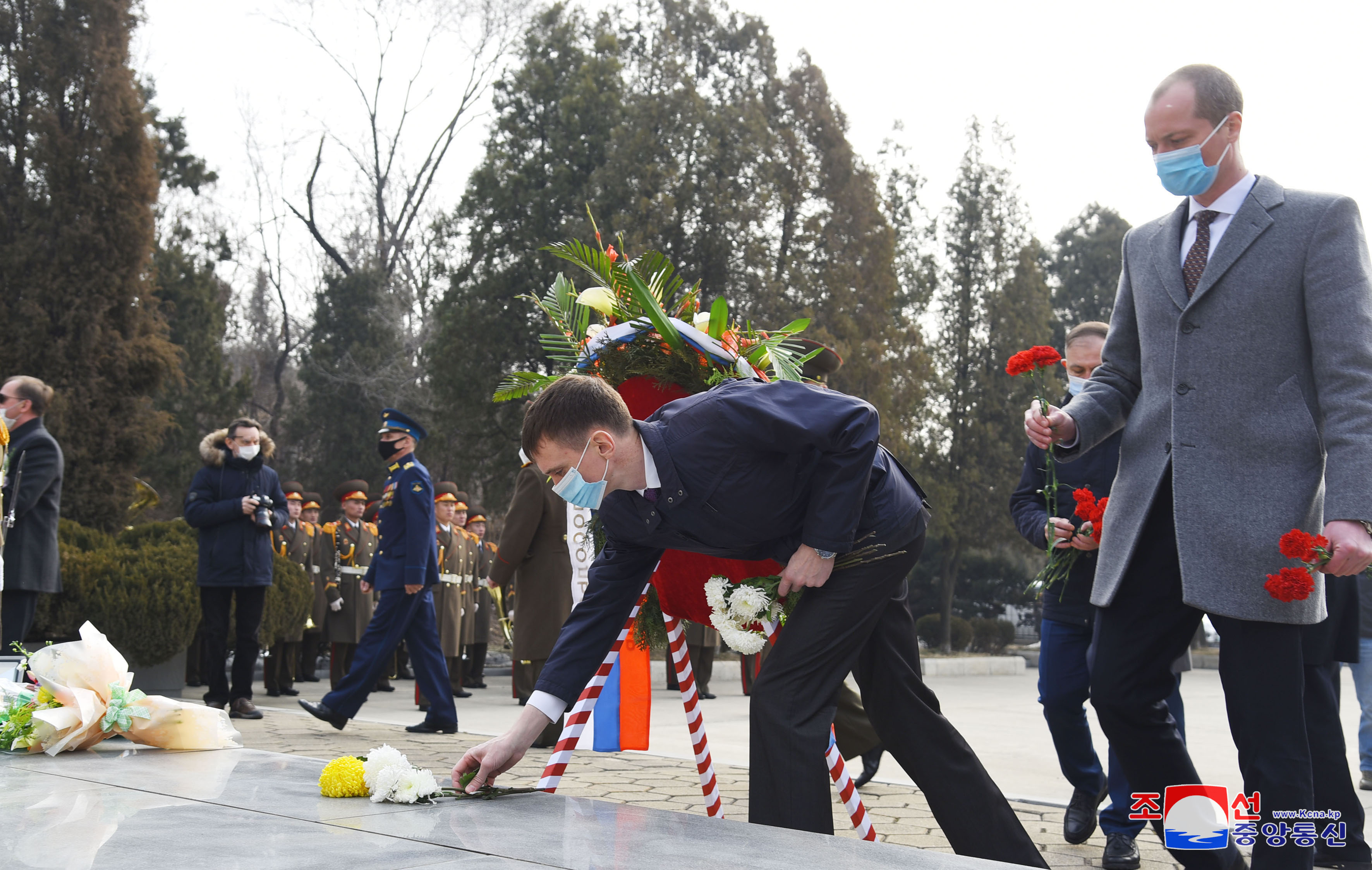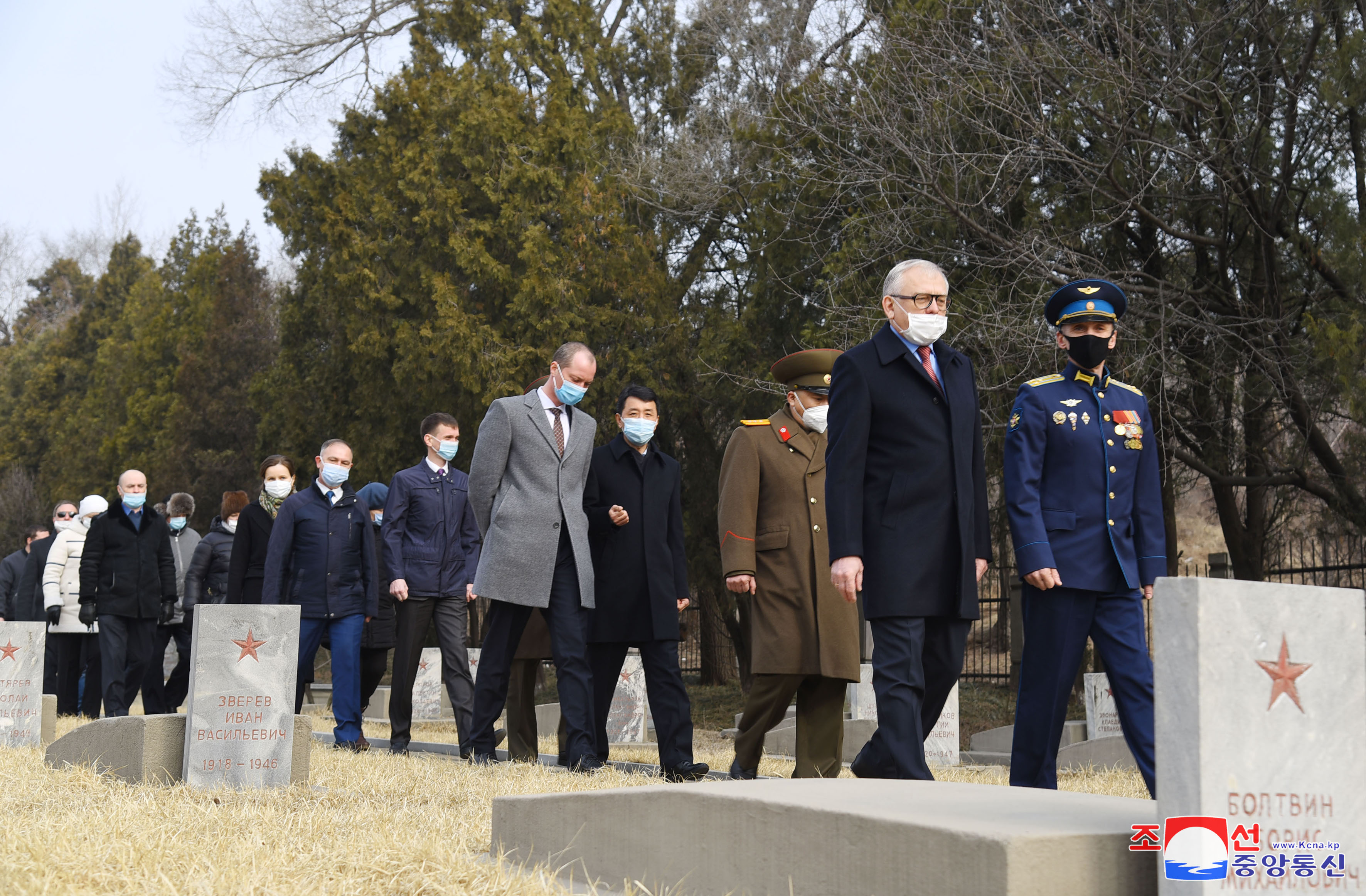 화환진정에는 알렉싼드르 마쩨고라 특명전권대사, 왈레리 이싸옌꼬 무관을 비롯한 로씨야대사관 성원들이 참가하였다.