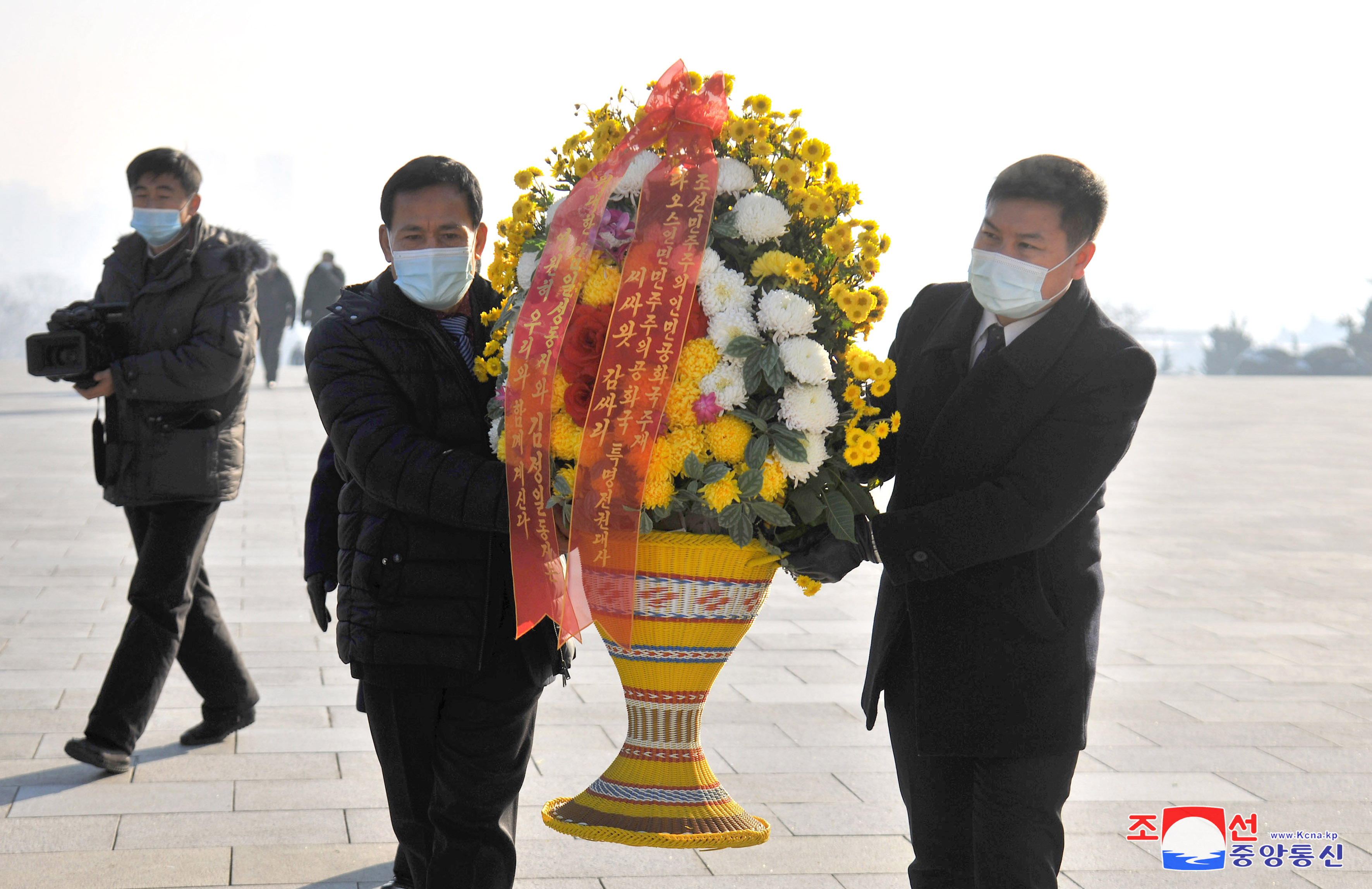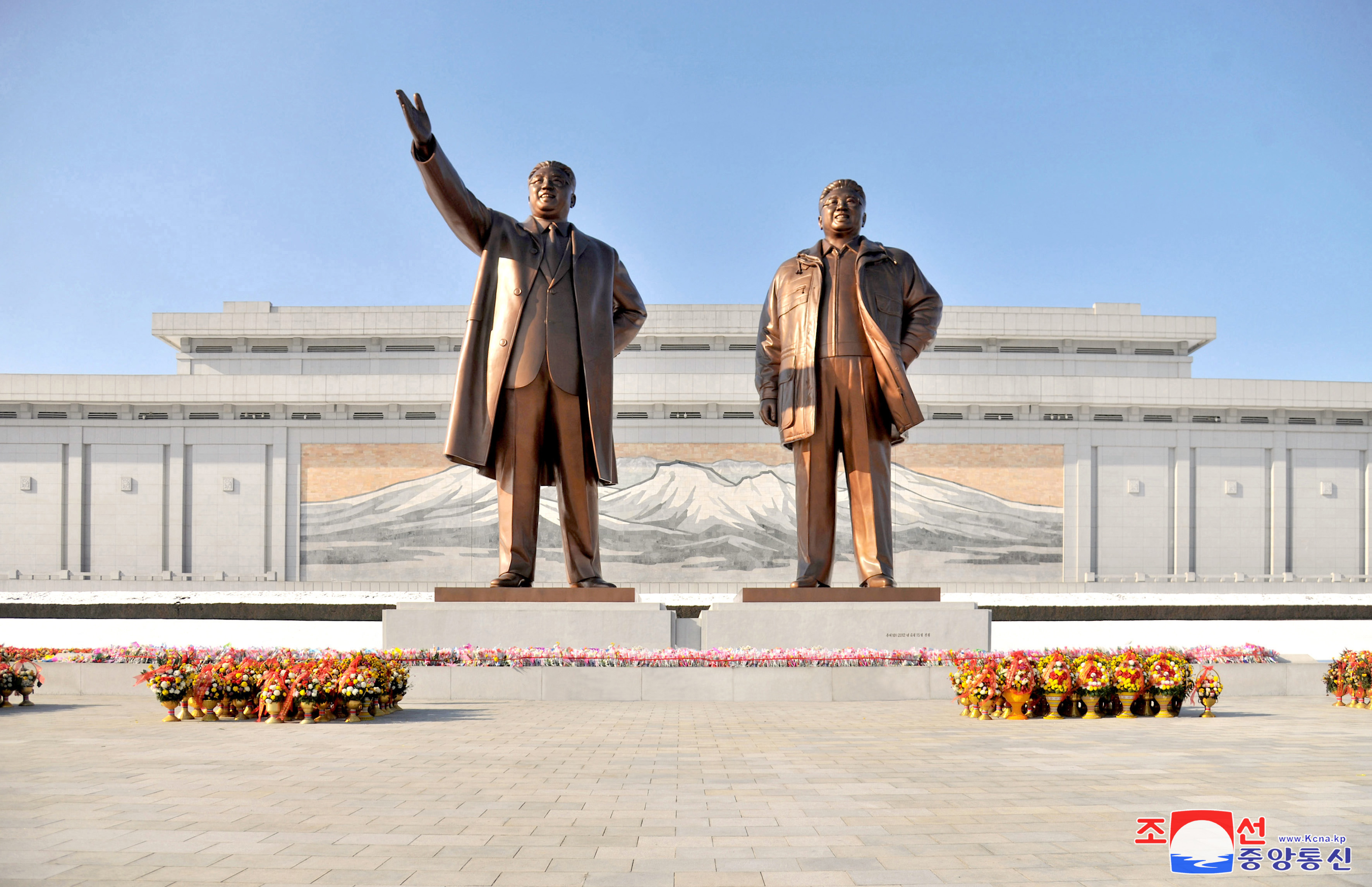 만수대언덕에 높이 모신