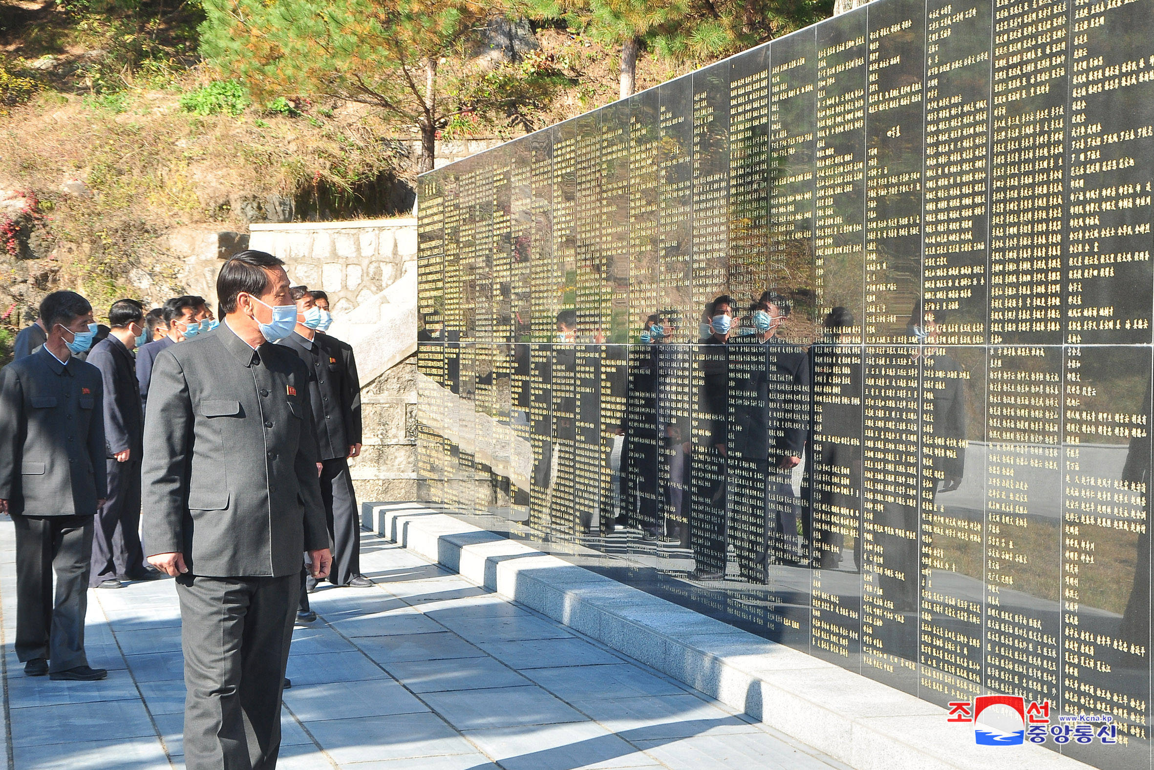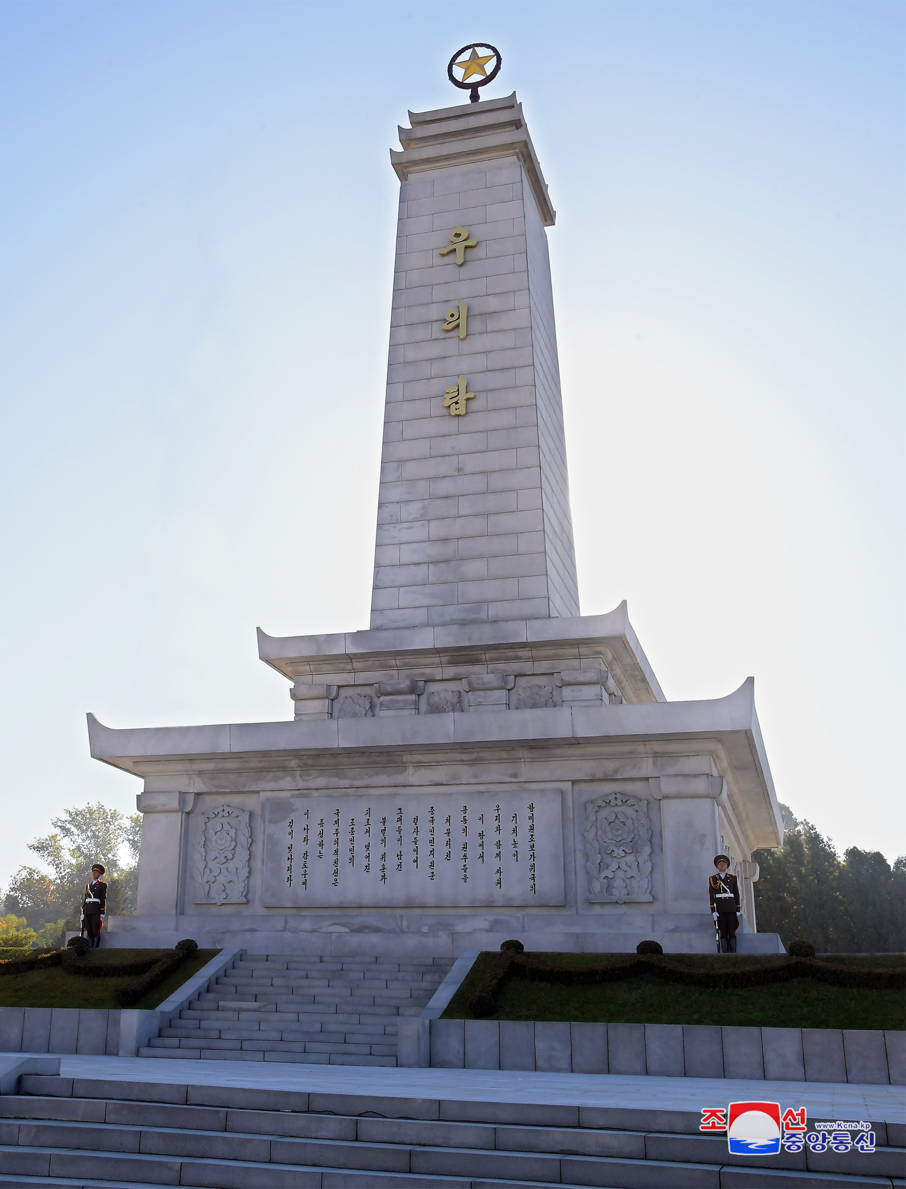 조선인민군 명예위병들이 우의탑에 서있었다.