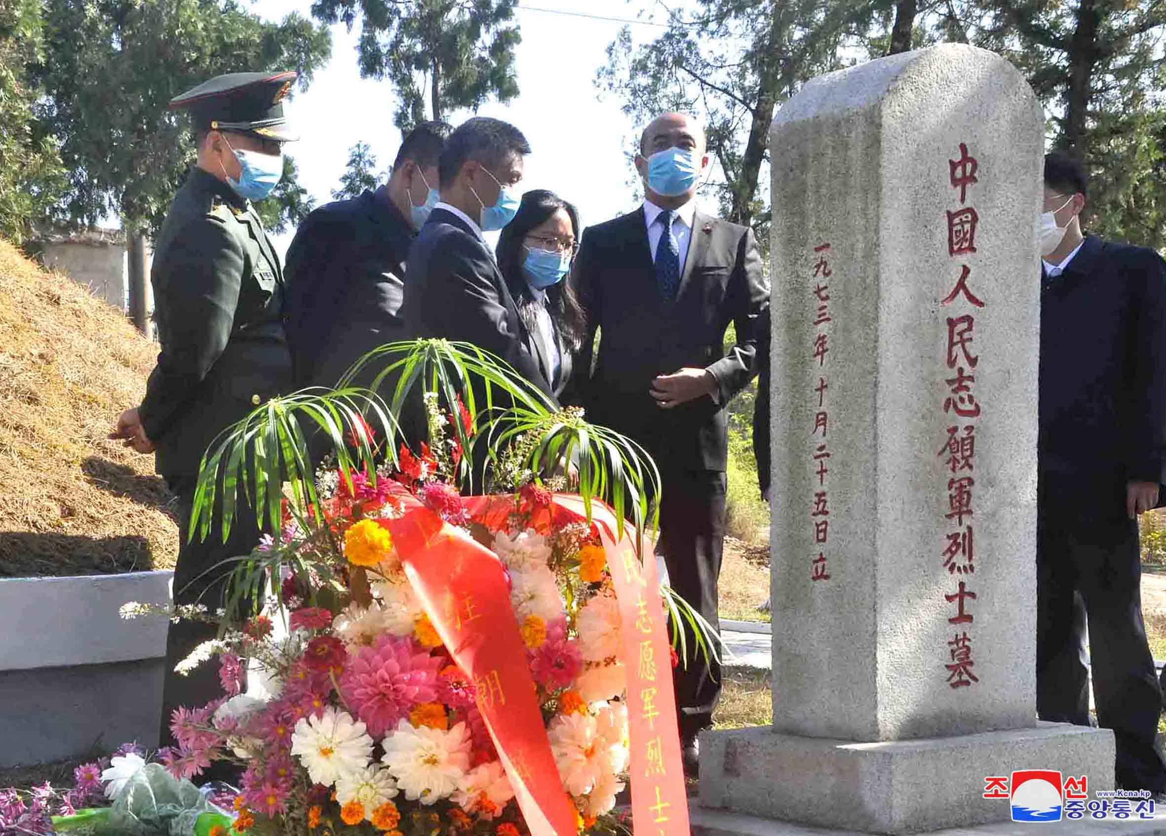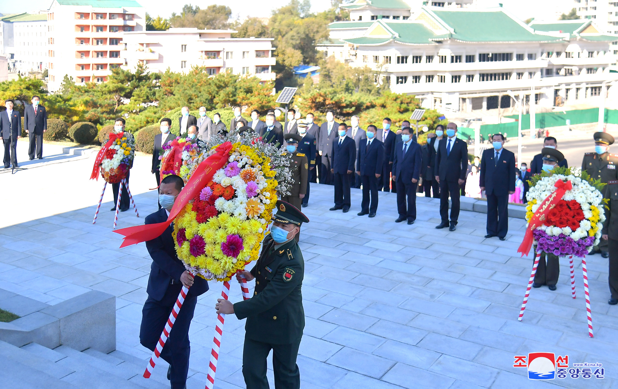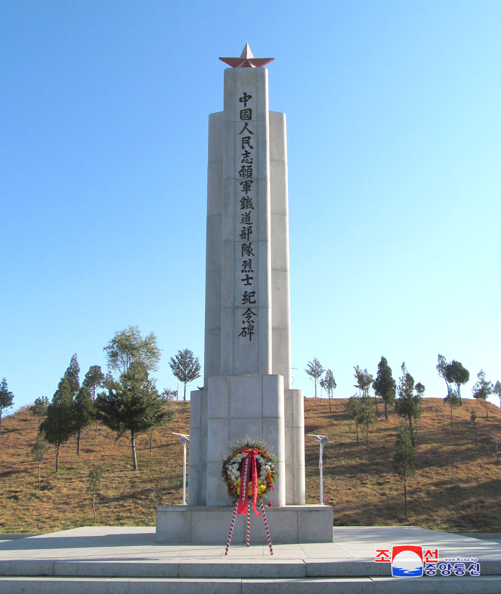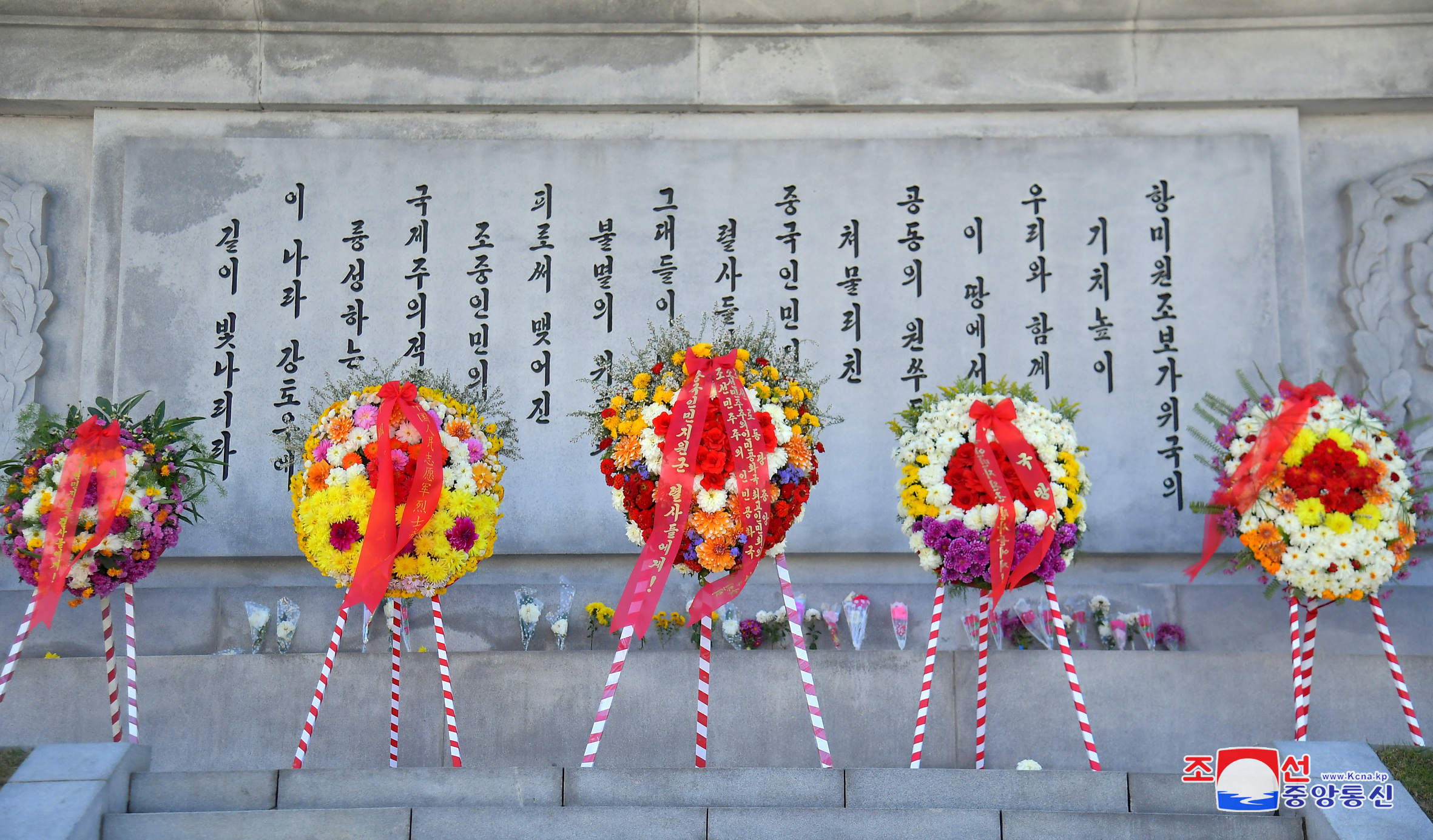 중국인민지원군 조선전선참전 72돐에 즈음하여 25일 우의탑에 화환들이 진정되였다.