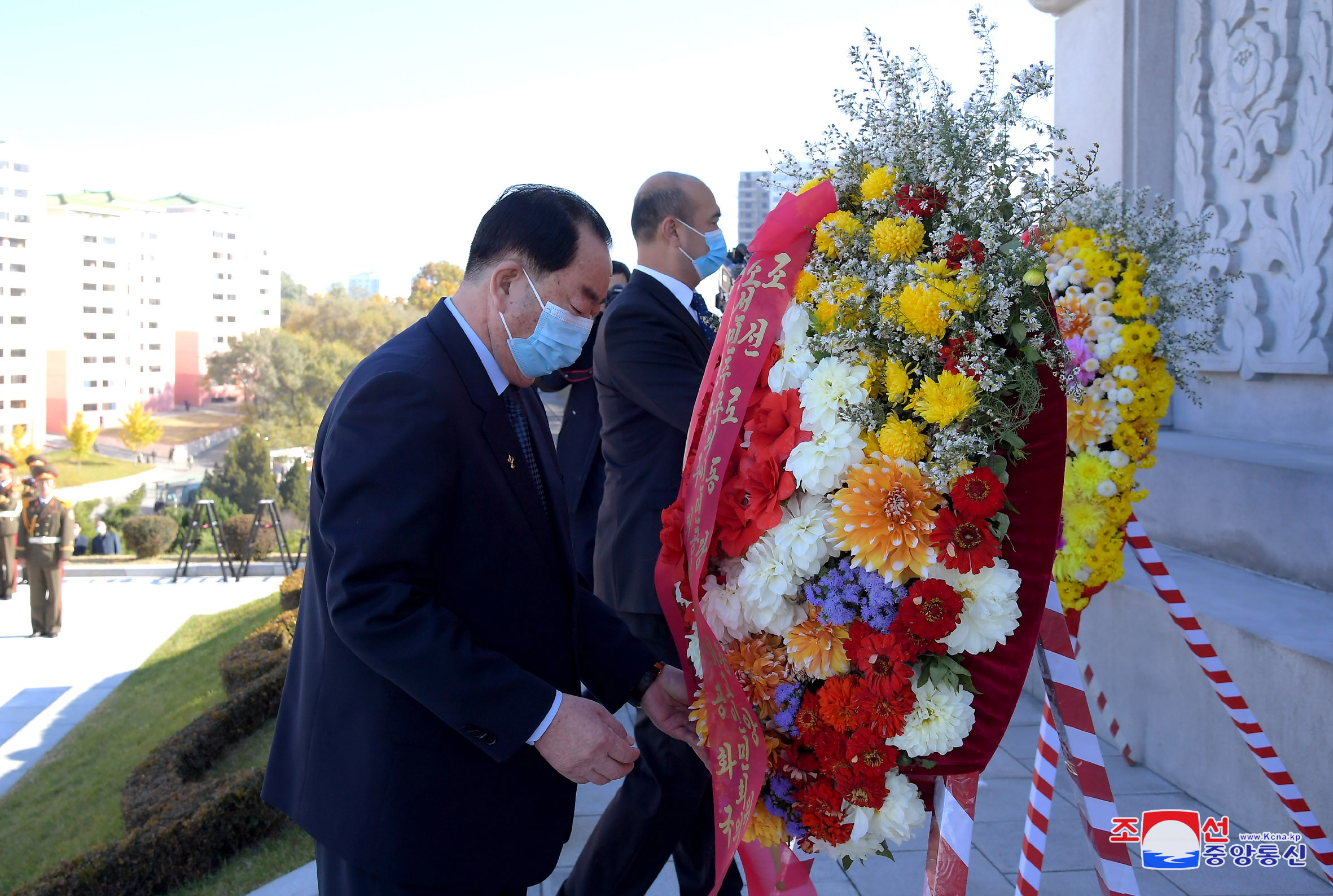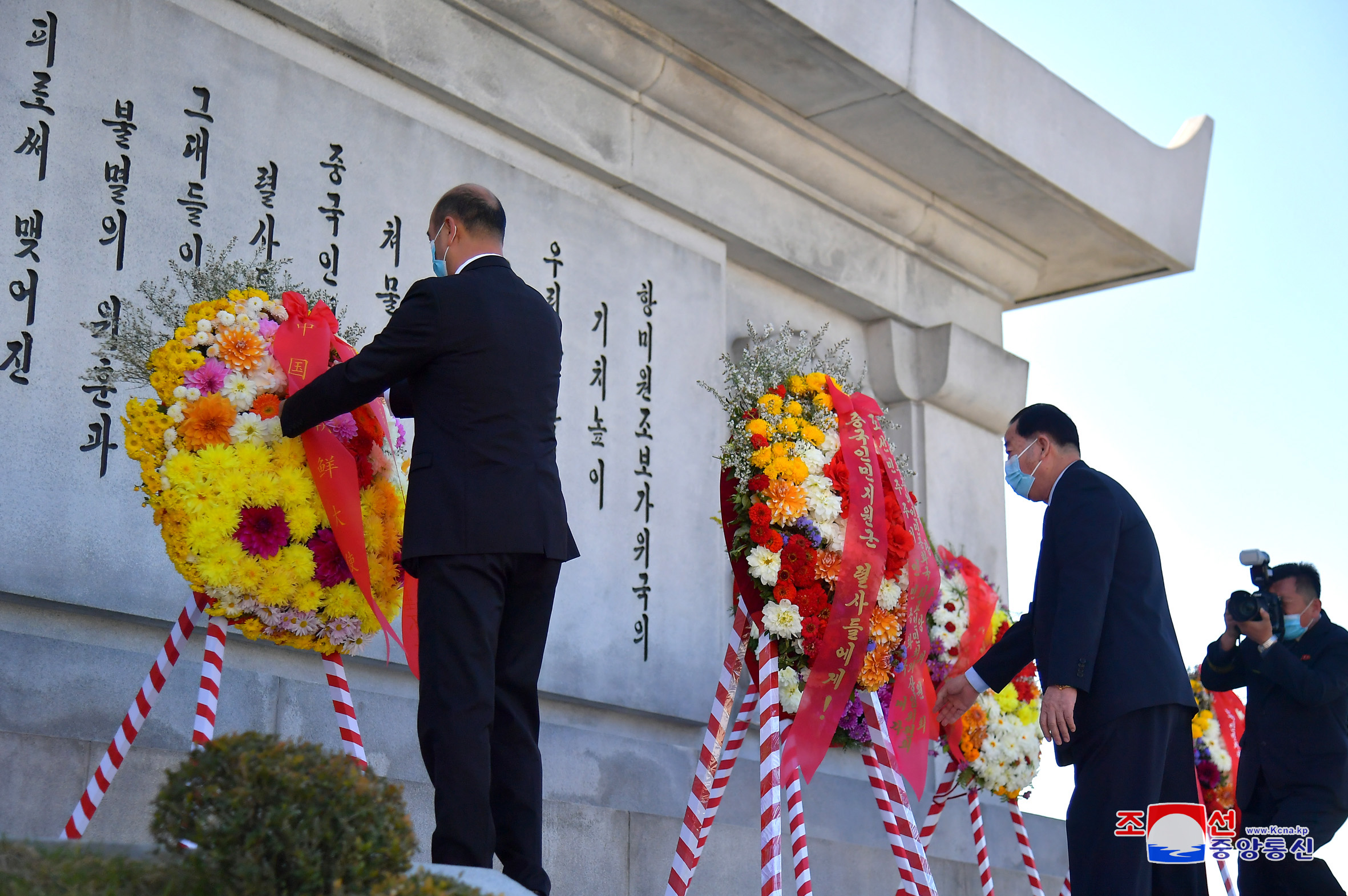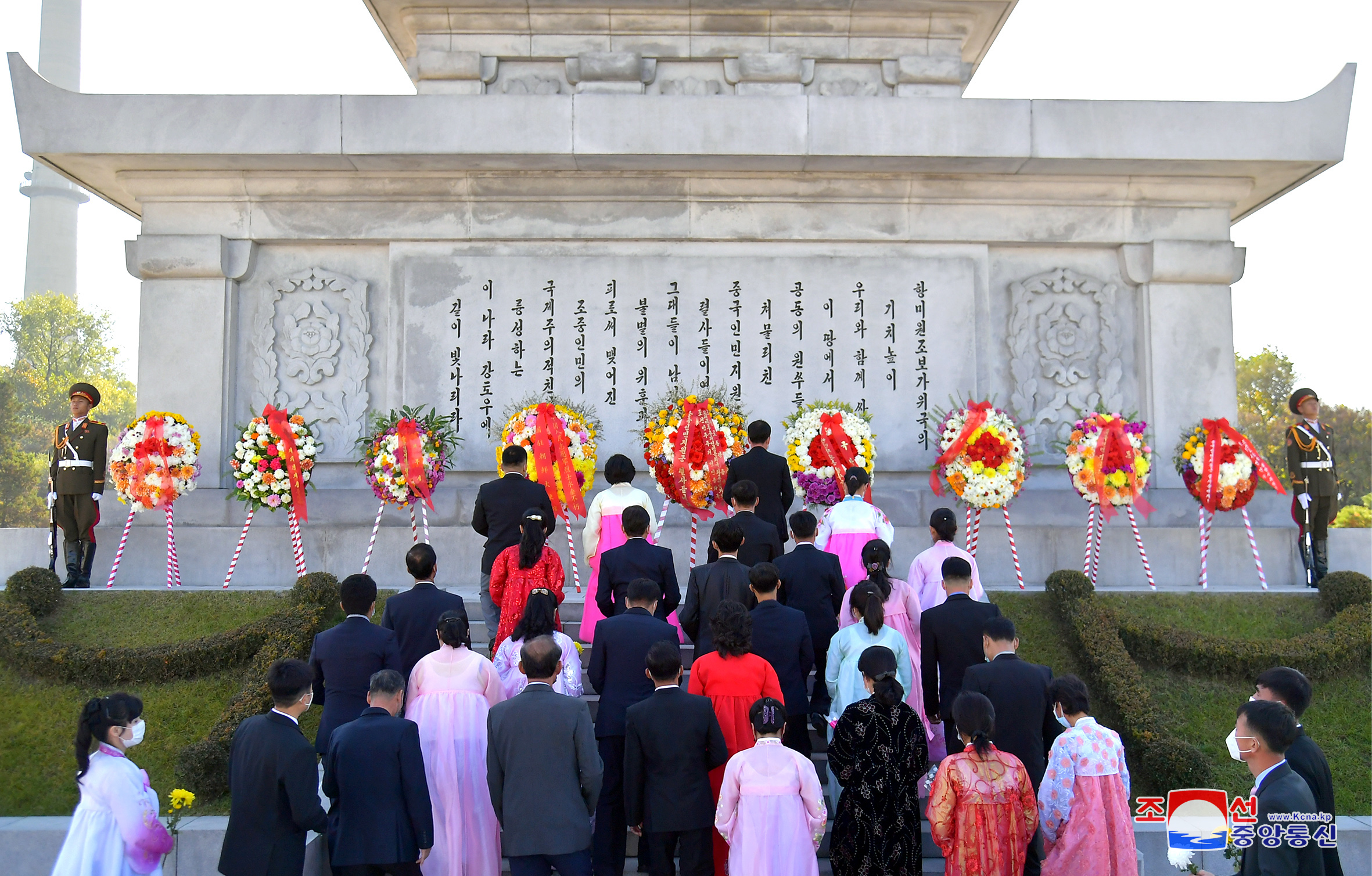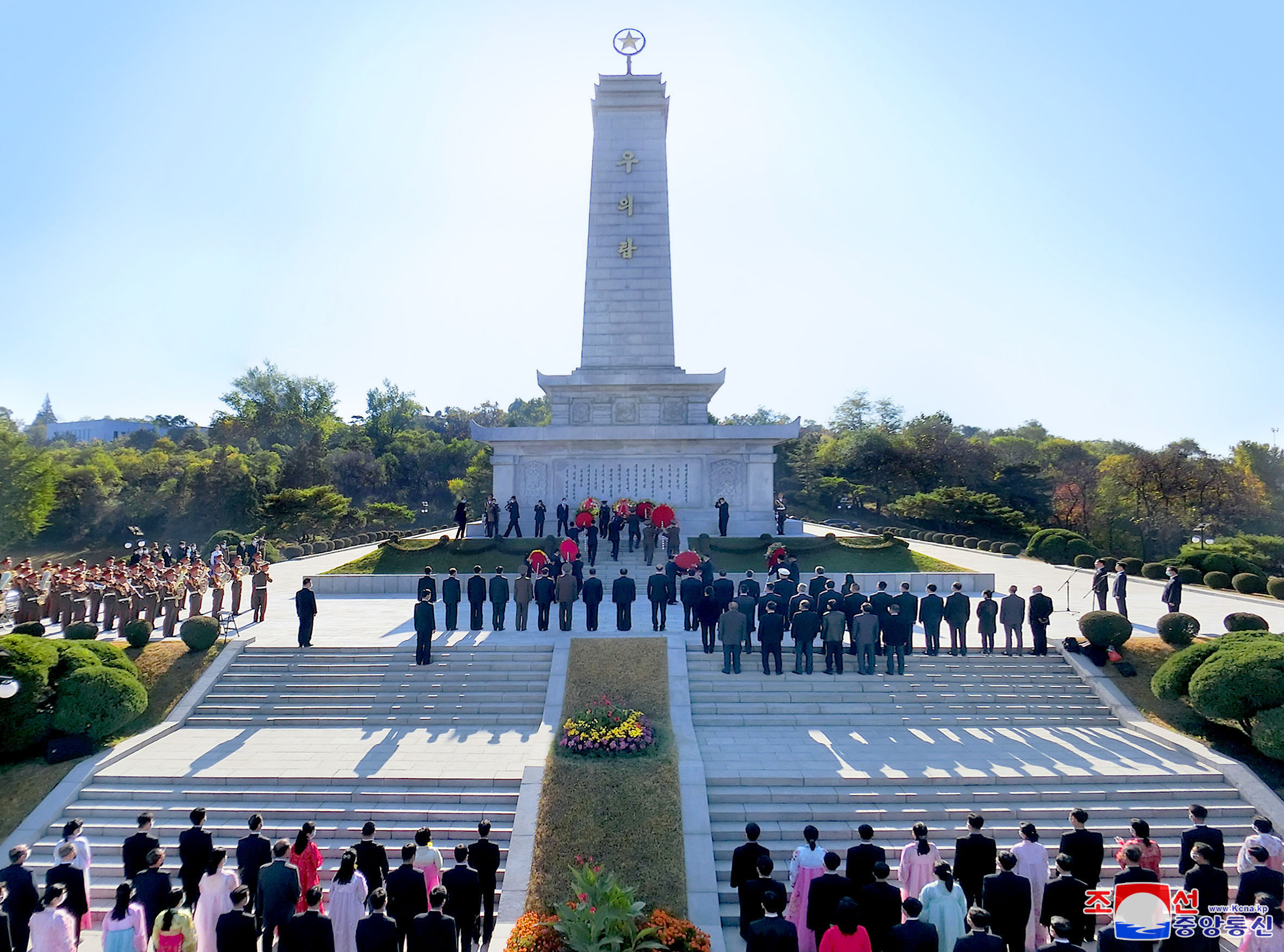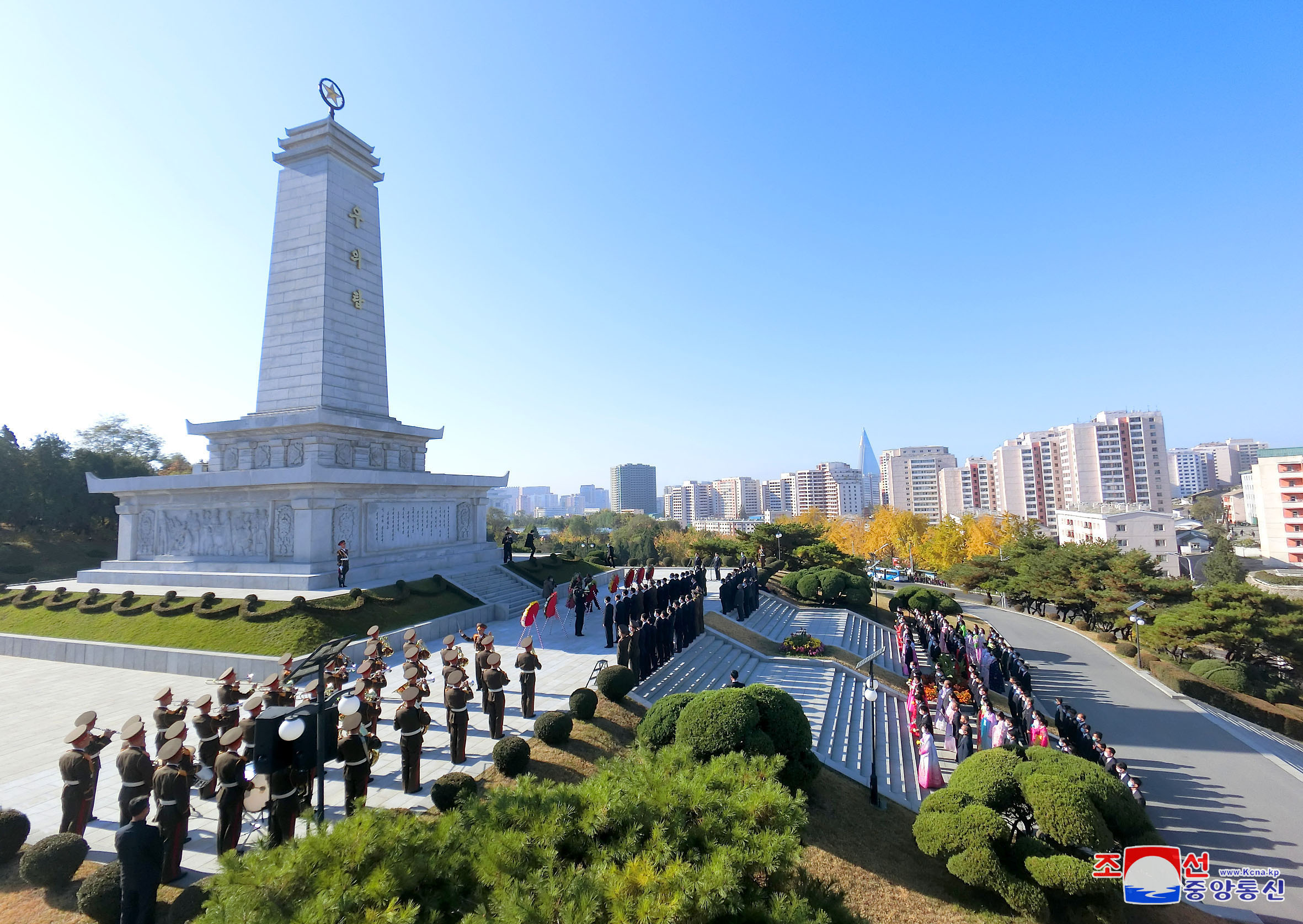 중국인민지원군 조선전선참전 72돐에 즈음하여 25일 우의탑에 화환들이 진정되였다.