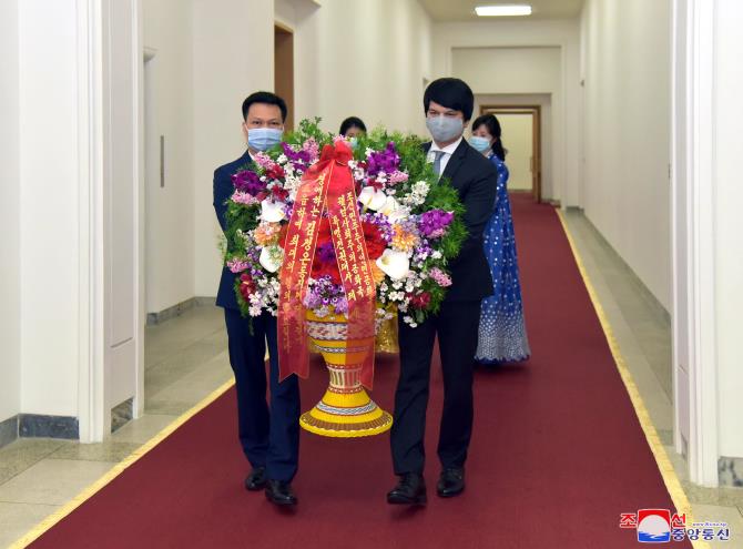 꽃바구니와 축하편지를 11일 만수대의사당에서 조선로동당 중앙위원회 국제부장 김성남동지에게 레 바 빙 특명전권대사가 전달하였다.(끝)
