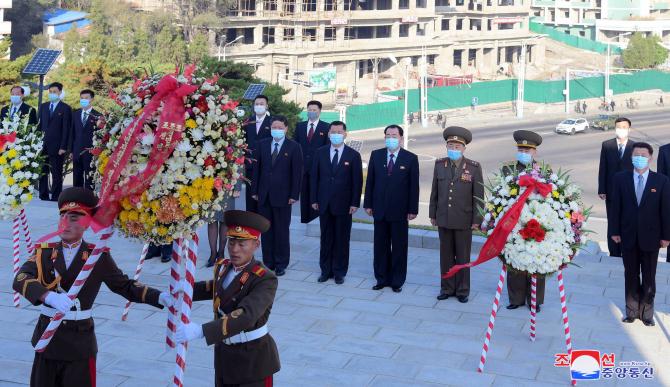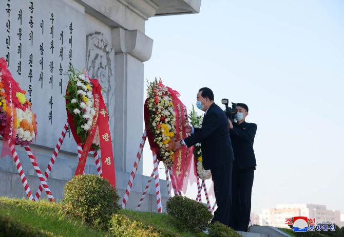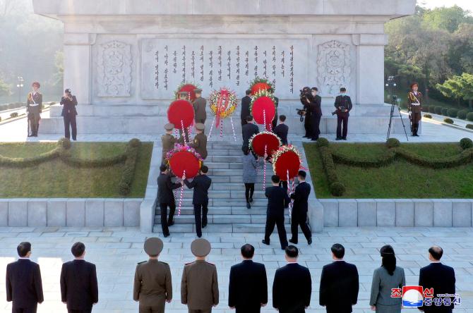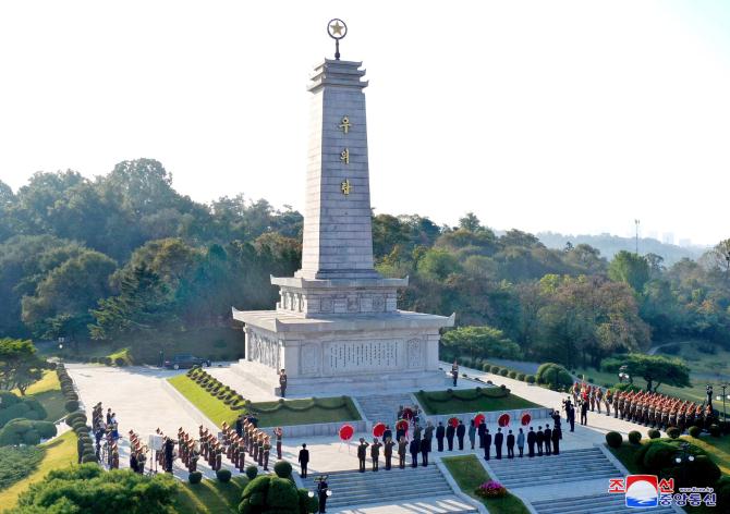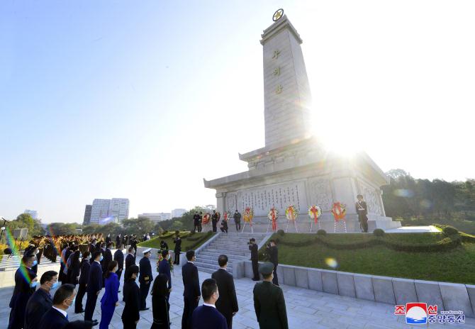중국인민지원군 조선전선참전 71돐에 즈음하여 25일 우의탑에 화환들이 진정되였다.