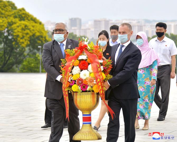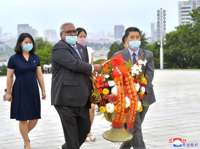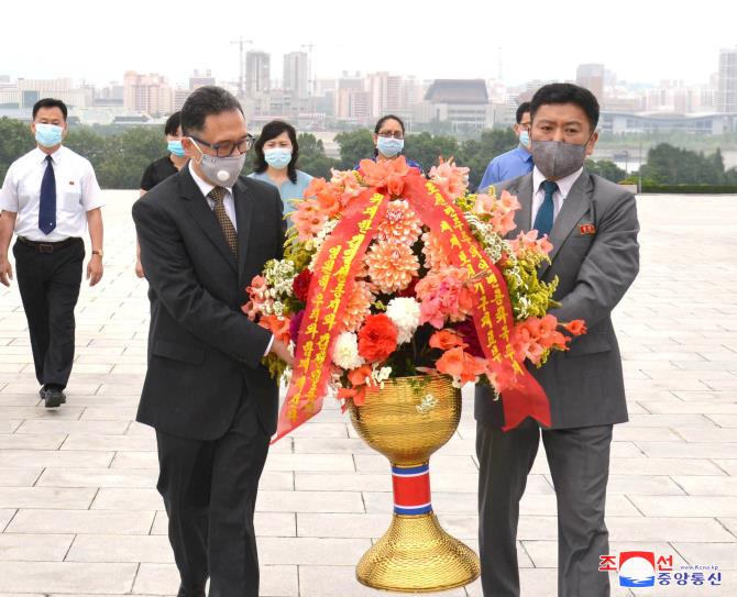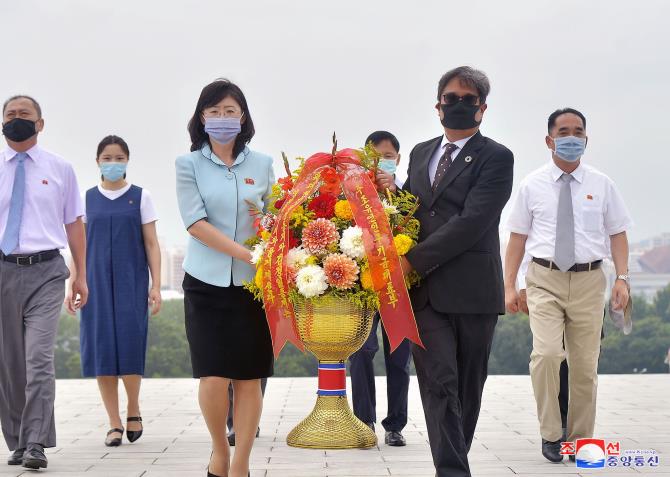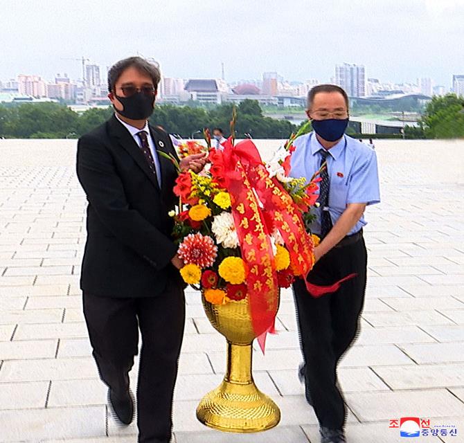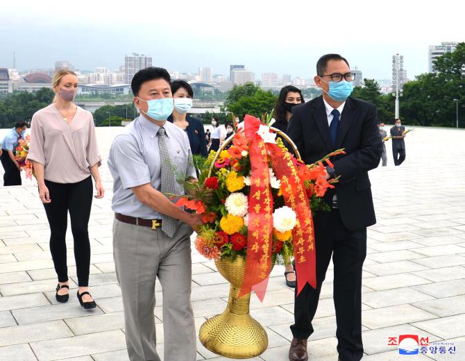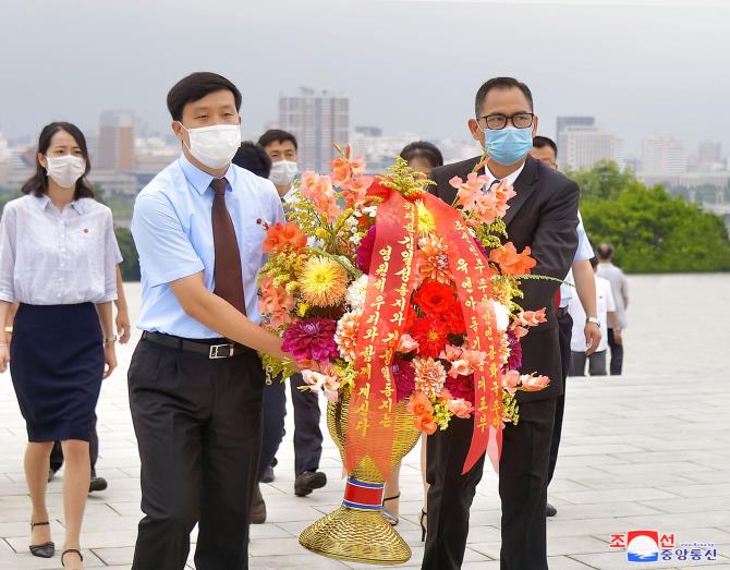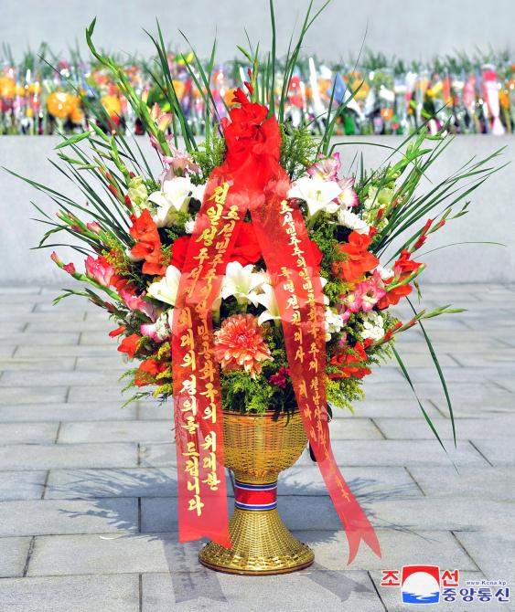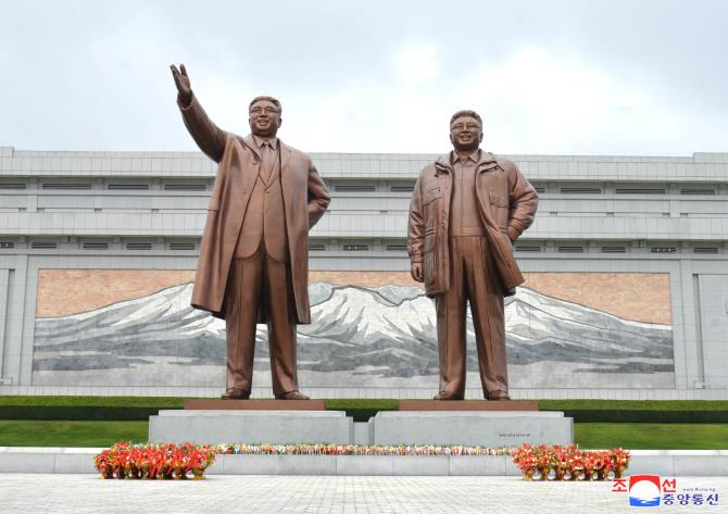 만수대언덕에 높이 모신