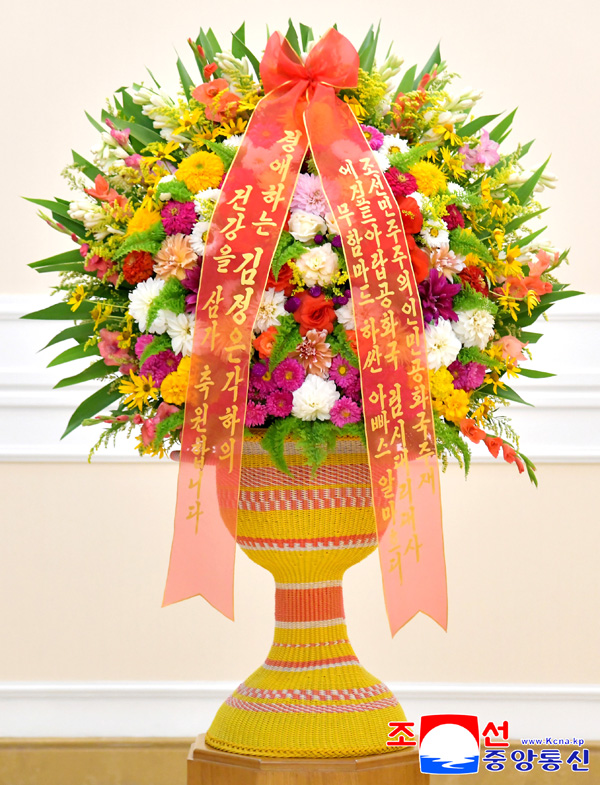 꽃바구니와 축하편지를 외교단을 대표하여 윁남사회주의공화국 특명전권대사, 로씨야련방 림시대리대사가 4일 해당 부문 일군에게 전달하였다.