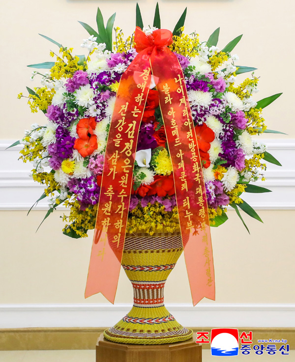 꽃바구니를 우리 나라 주재 나이제리아련방공화국 림시대리대사가 11일 해당 부문 일군에게 전달하였다.