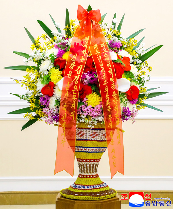 꽃바구니를 우리 나라 주재 라오스인민민주주의공화국 특명전권대사가 11일 해당 부문 일군에게 전달하였다.(끝)