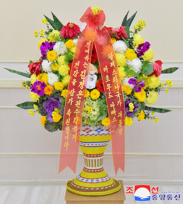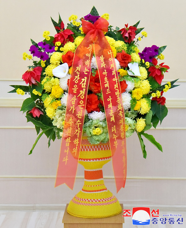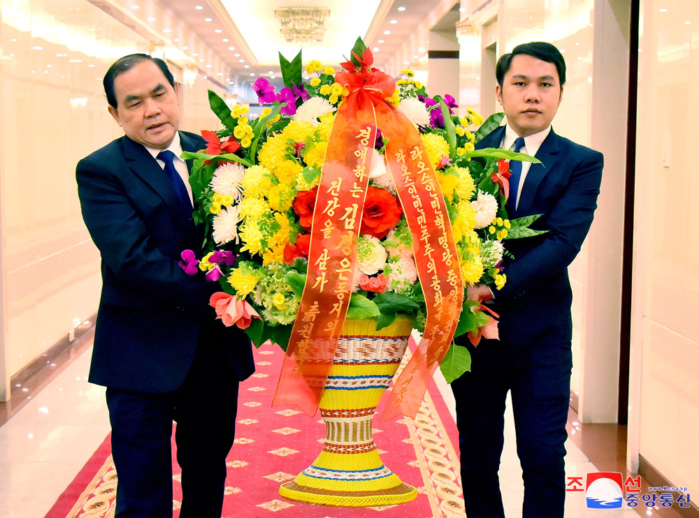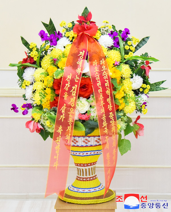 꽃바구니를 우리 나라 주재 라오스인민민주주의공화국 특명전권대사가 11일 해당 부문 일군에게 전달하였다.(끝)