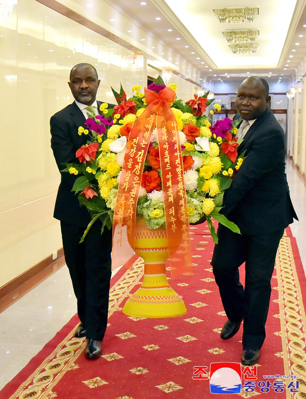 꽃바구니를 우리 나라 주재 나이제리아련방공화국 림시대리대사가 11일 해당 부문 일군에게 전달하였다.(끝)