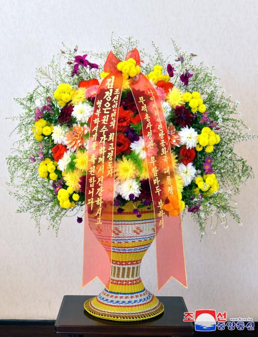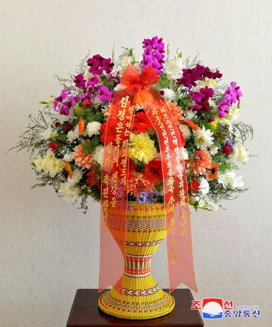 꽃바구니를 7일 해당 부문 일군에게 우리 나라 주재 라오스특명전권대사가 전달하였다.(끝)