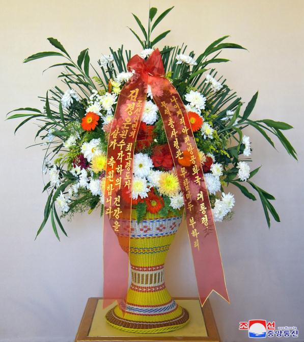 꽃바구니를 8일 우리 나라 주재 라오스특명전권대사가 해당 부문 일군에게 전달하였다.(끝)
