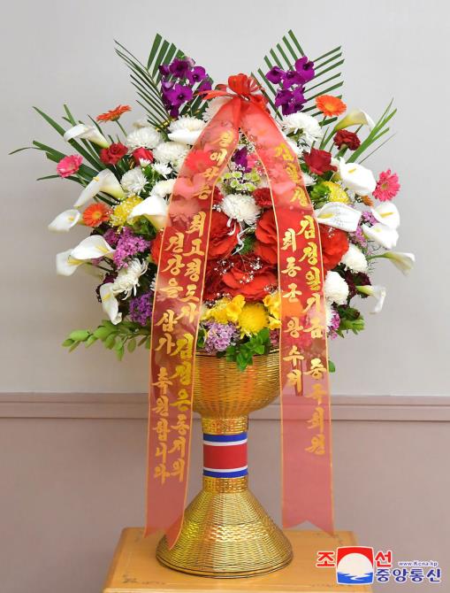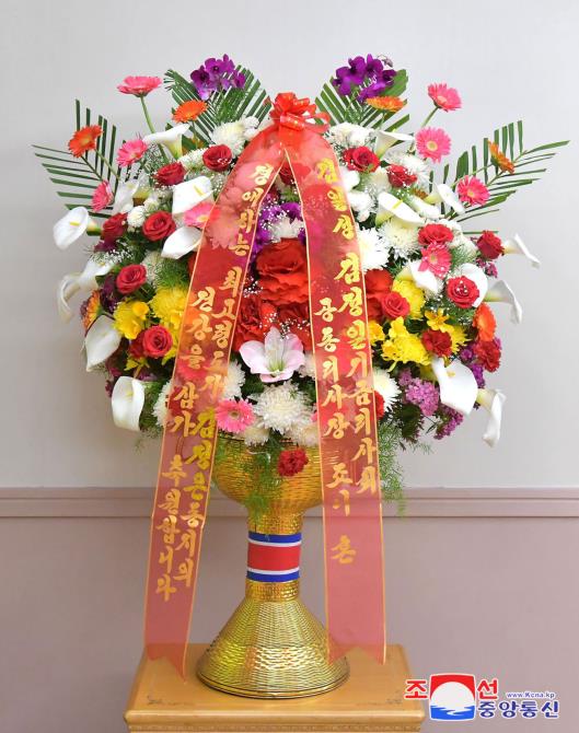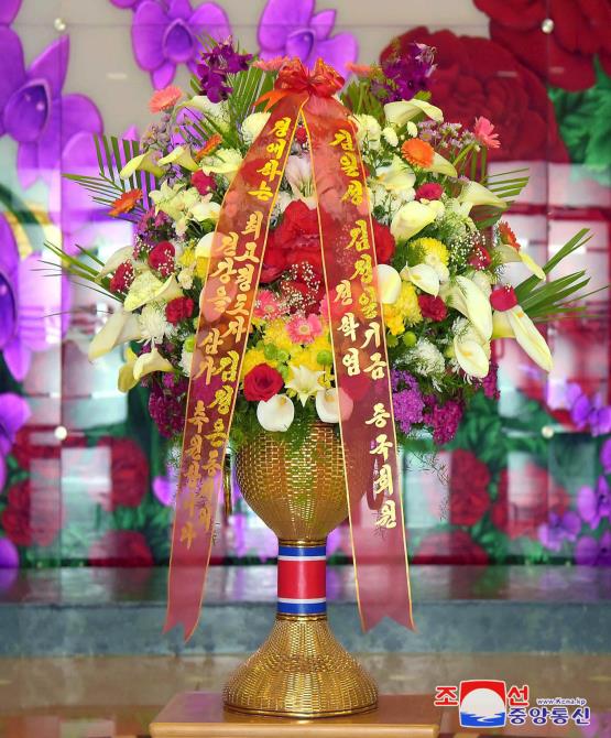 태양절에 즈음하여 캄보쟈왕국 국왕 노로돔 시하모니와 대왕후 노로돔 모니니예트 시하누크가 13일 이 나라 주재 우리 나라 대사관에 대형꽃바구니들을 보내여왔다.