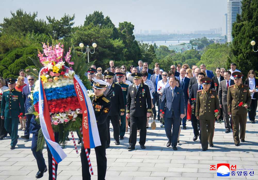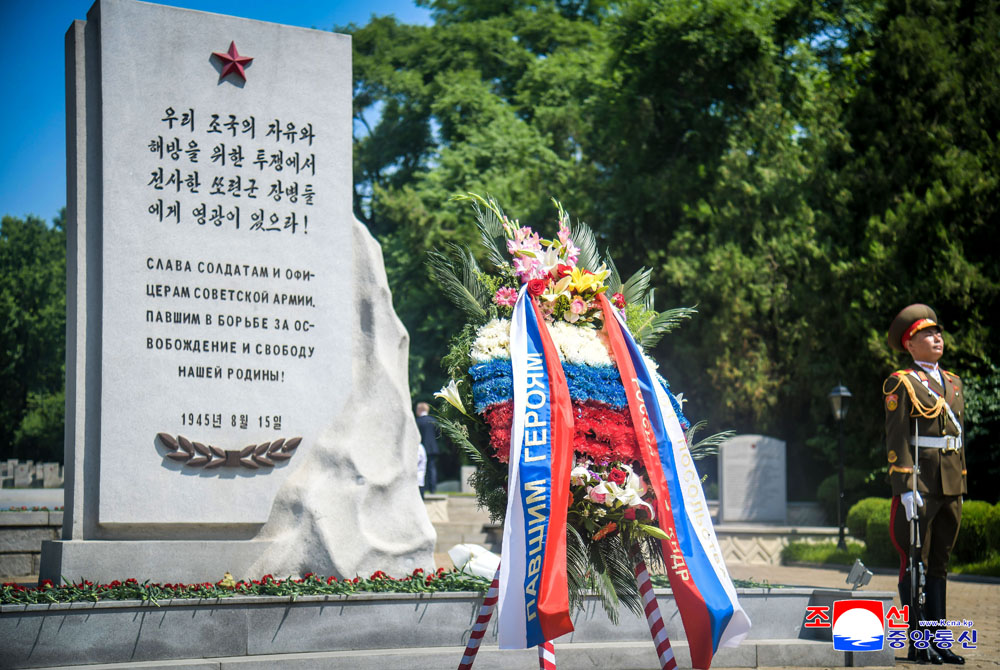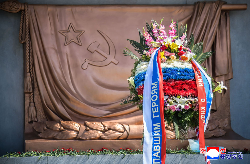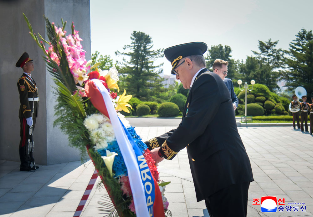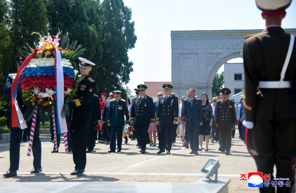 화환진정곡이 울리는 가운데 로씨야련방대사관의 명의로 된 화환이 해방탑에 진정되였다.