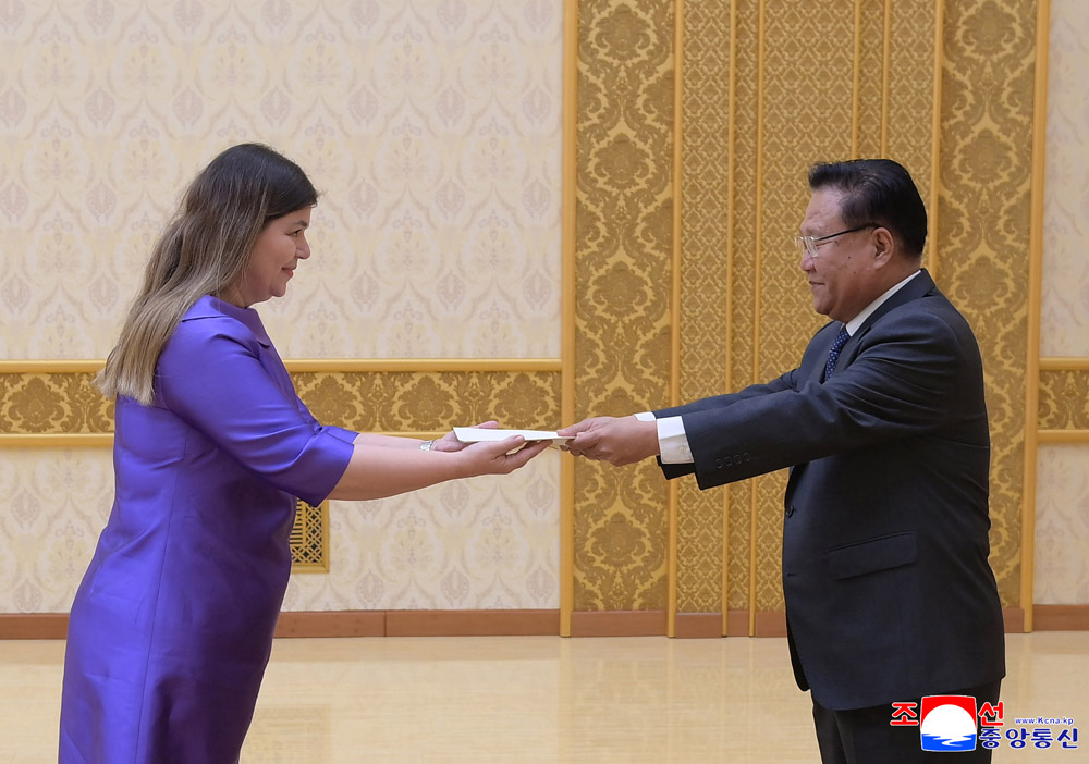 조선민주주의인민공화국 국무위원장동지의 위임에 따라 국무위원회 제1부위원장이며 최고인민회의 상임위원회 위원장인 최룡해동지가 23일 만수대의사당에서 마야 스떼파노비츠 쓰르비아공화국 특명전권대사로부터 신임장을 받았다.